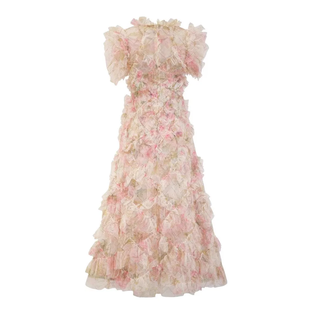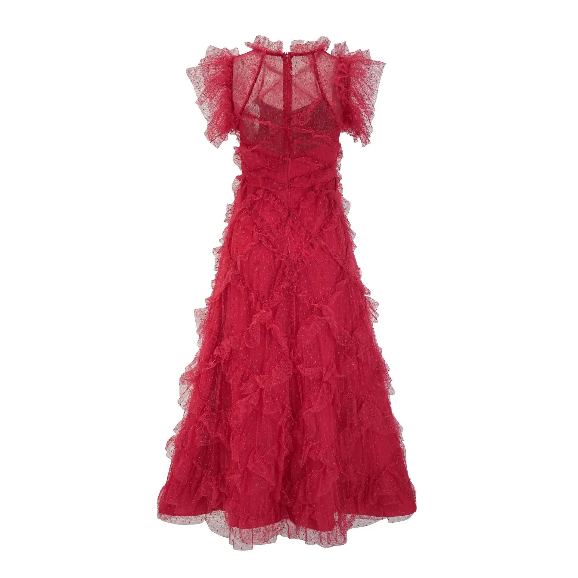 Long Dress Runway Designer High Quality Summer New Women'S Bohemian Fashion Party Vintage Elegant Chic Slim Dot Mesh Red Dresses