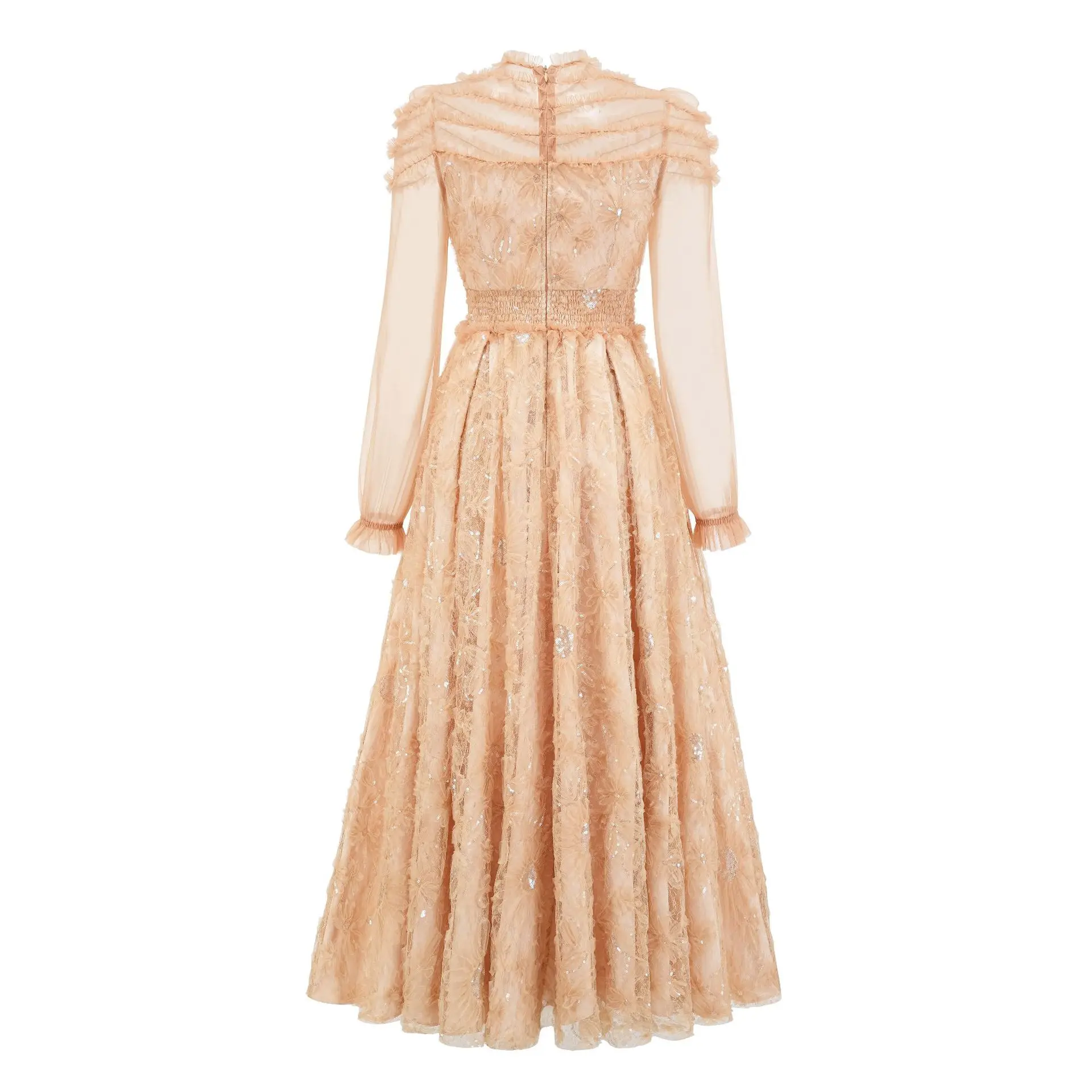 Party Evening Elegant Luxury Celebrity Dress Women's Spring Autumn Full Sleeve Ruffle Splice Sequined Waist Elastic Long Prom