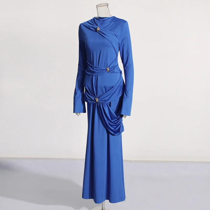 ZYHT 73902 Dark Green Blue Long Sleeve Simple Elegant Evening Dress Customize High End Women Clothing Manufacturer