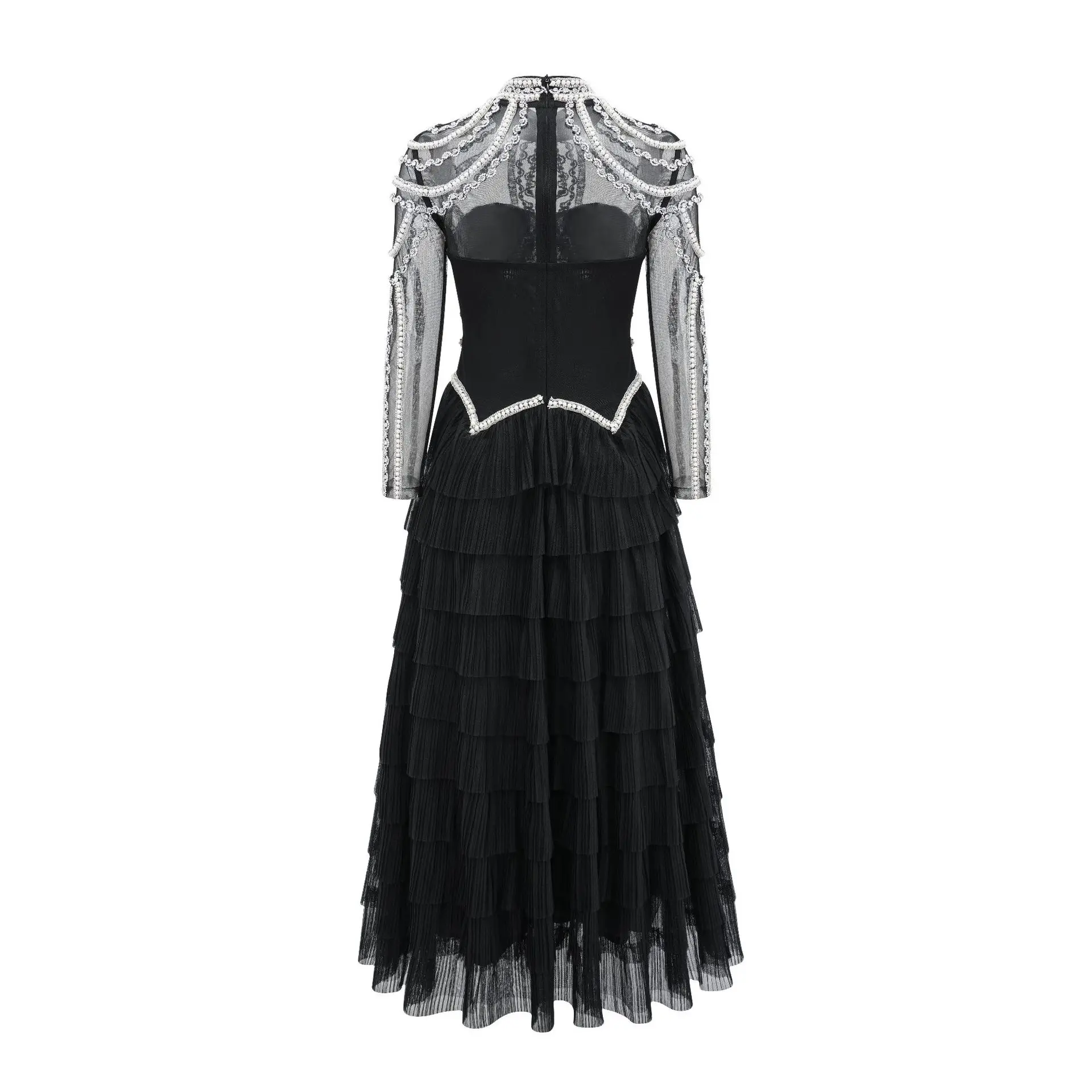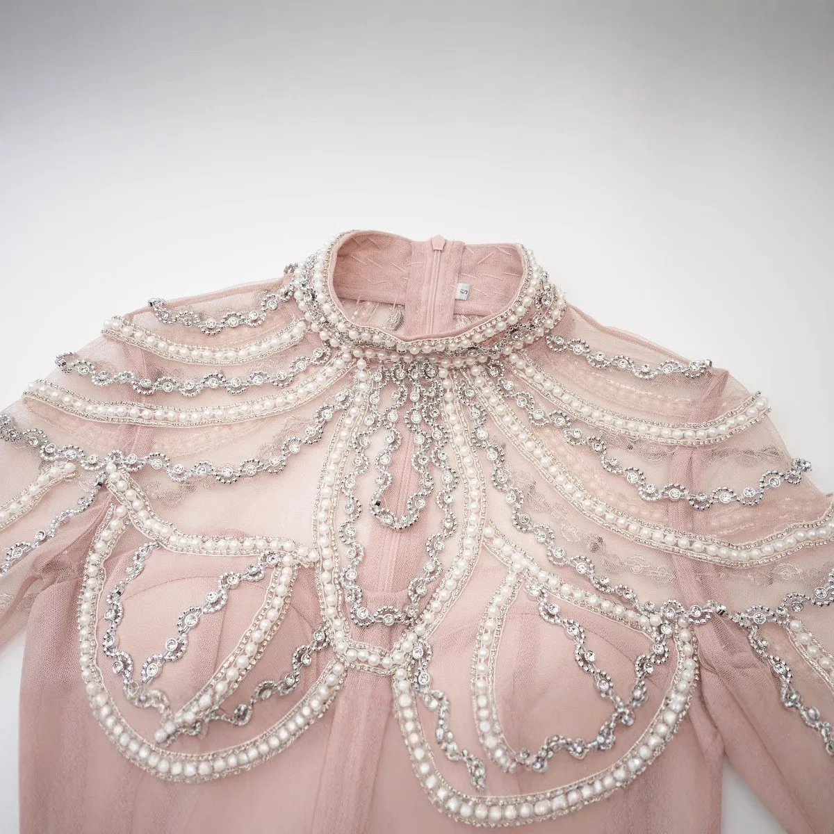 Shining Diamonds Pearl Beading Sexy See Through Mesh Ball Gown Dress Woman Birthday Party Vestido Celebrity Party Outfit