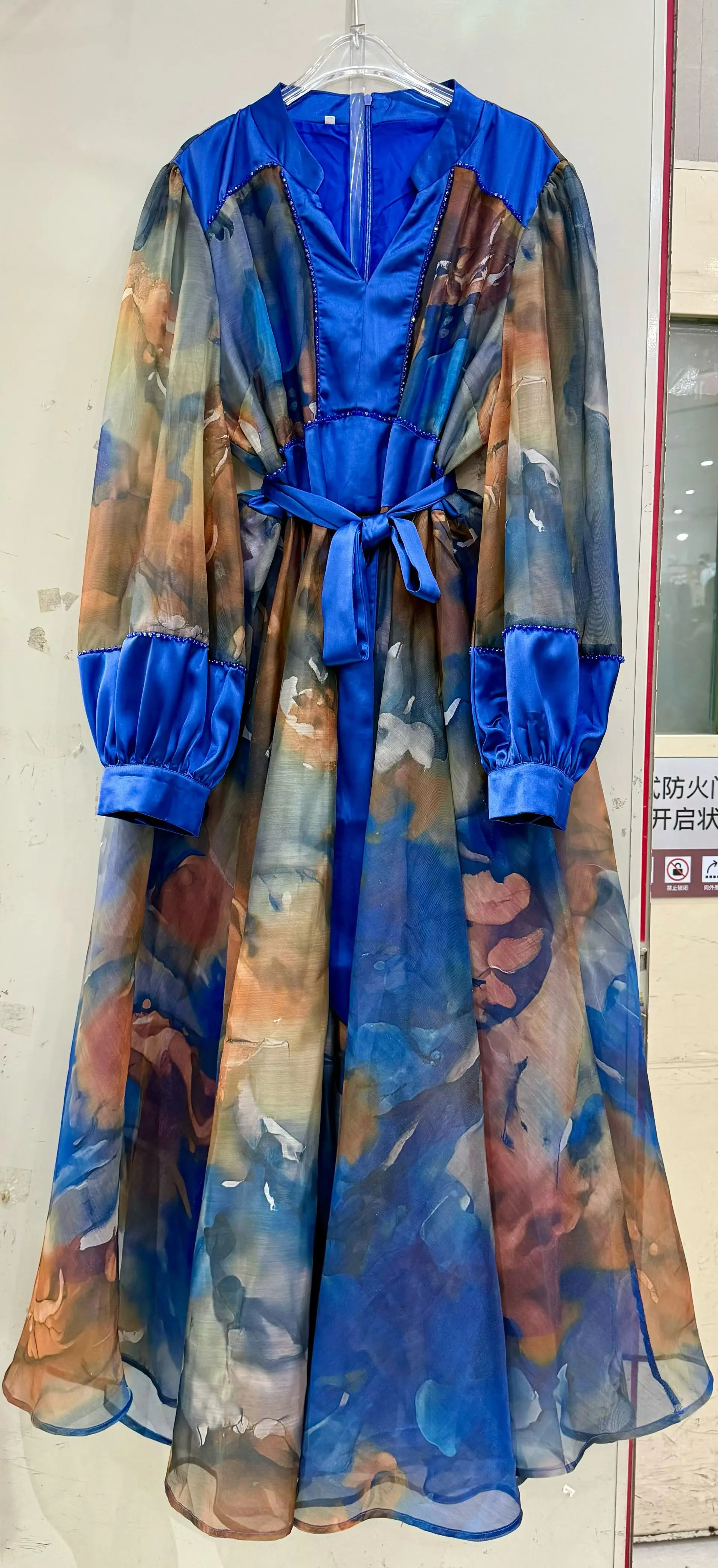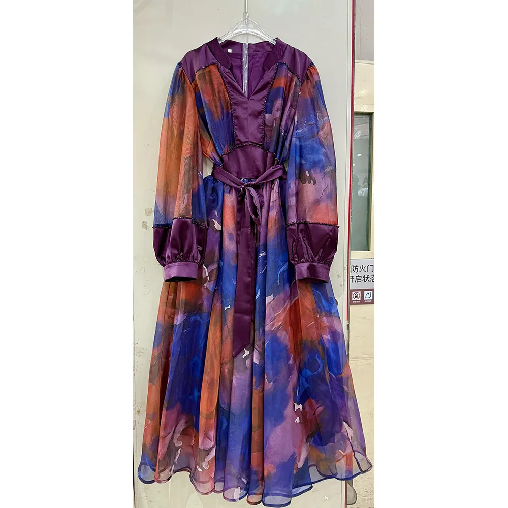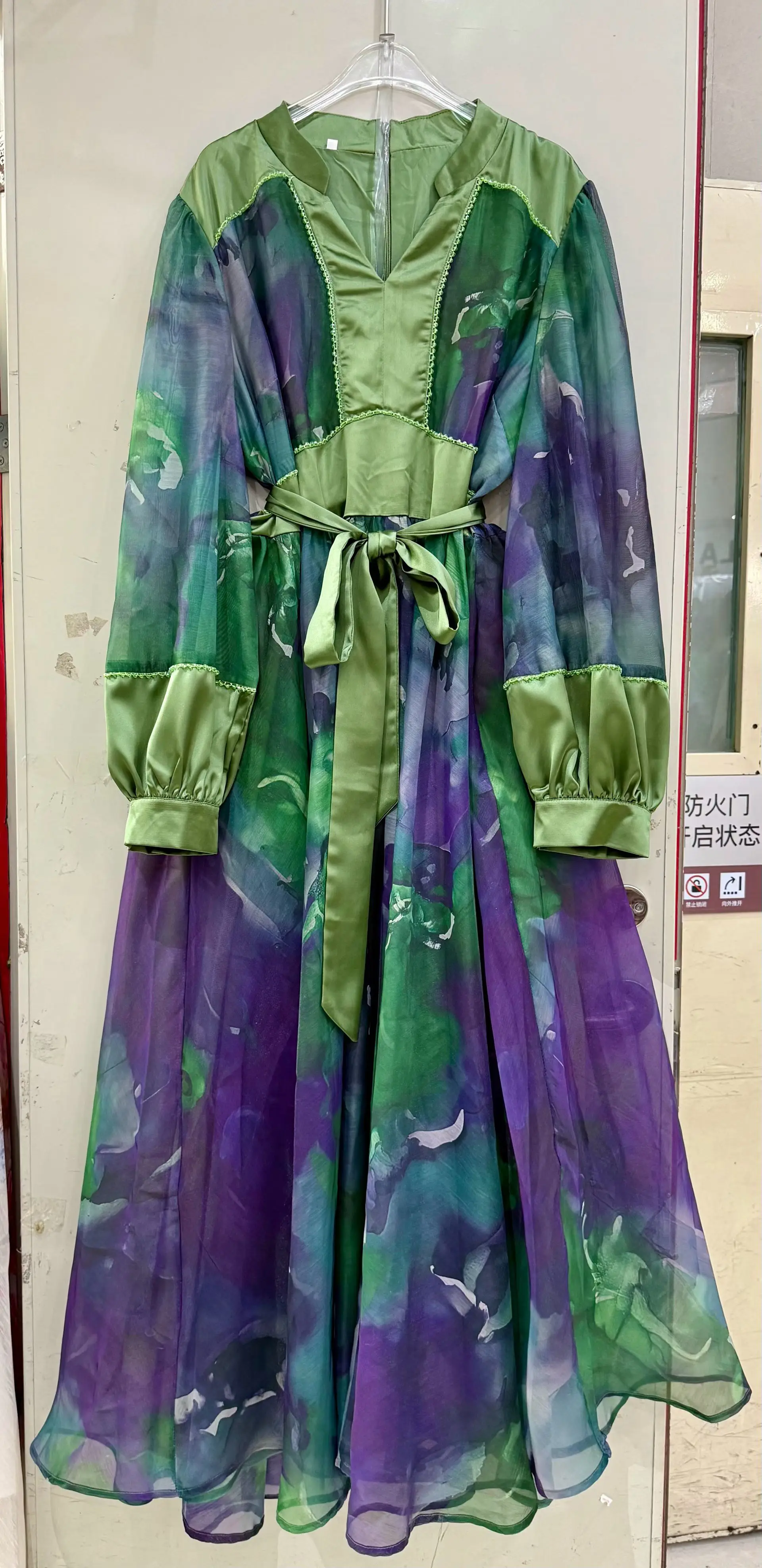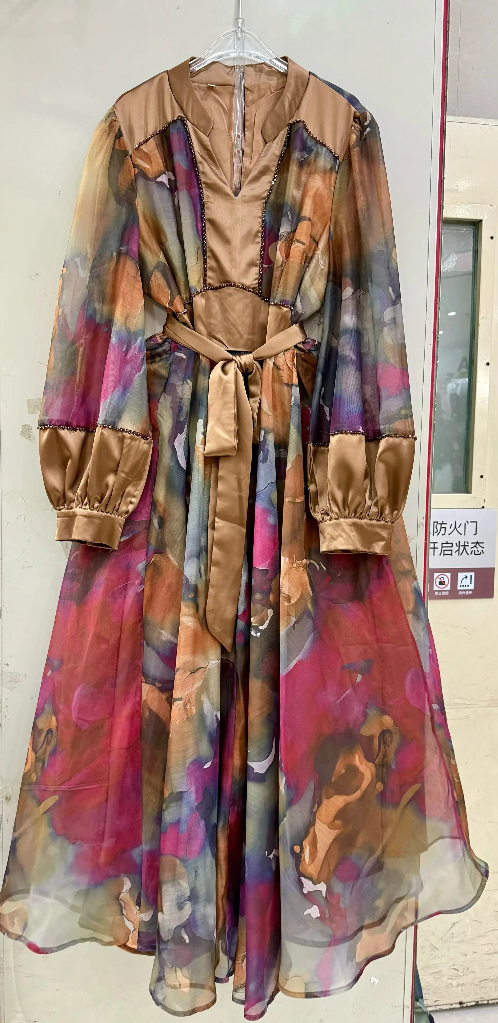 Own Factory Accept Customization Elegant Long Party Dress Women V-Neck Flower Printed Loose Gown for Women Banquet Party