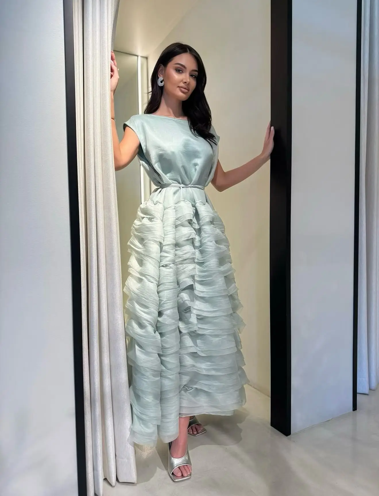 ZYHT 73902 Dark Green Blue Long Sleeve Simple Elegant Evening Dress Customize High End Women Clothing Manufacturer