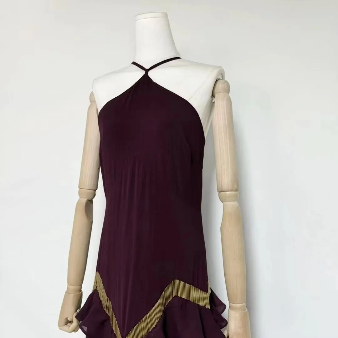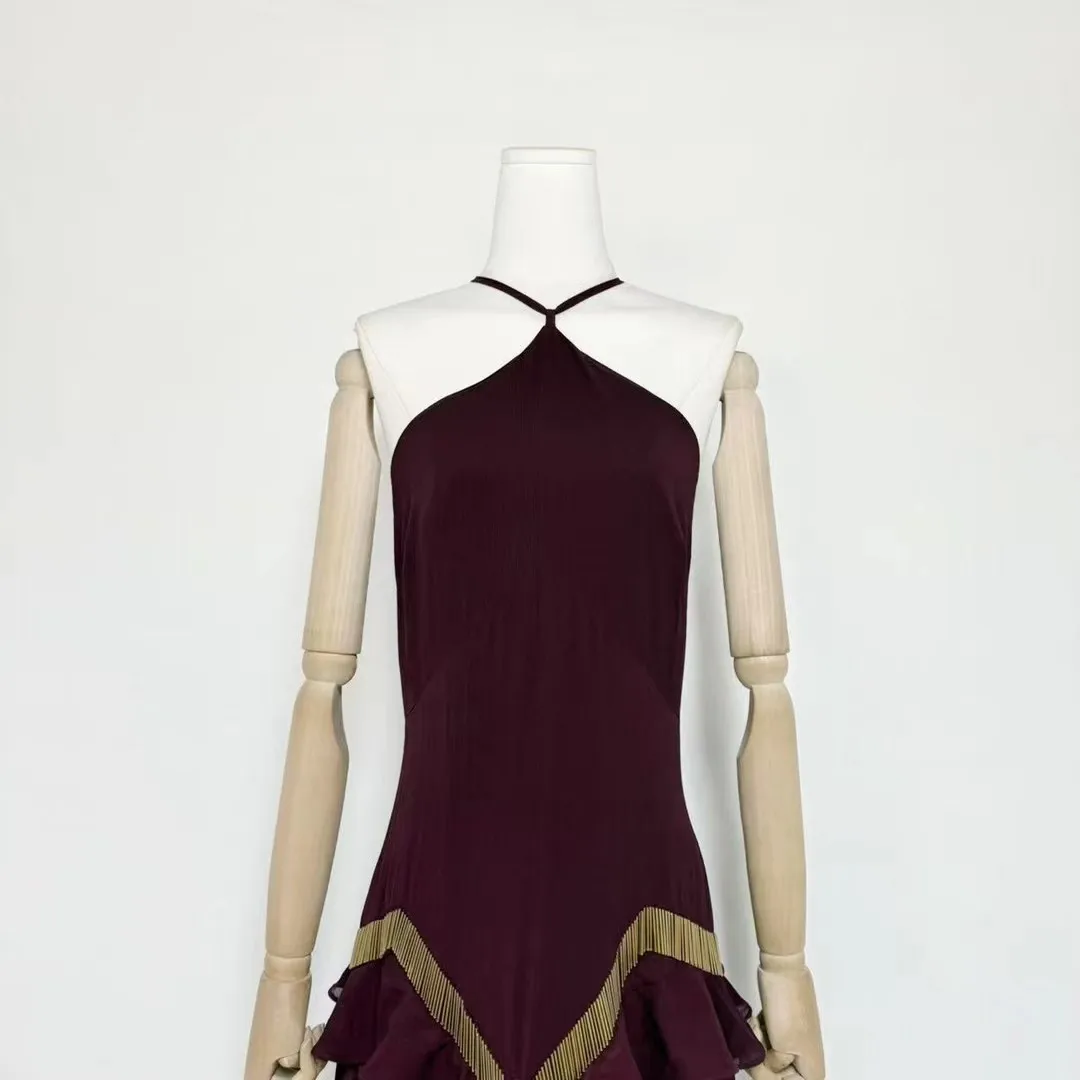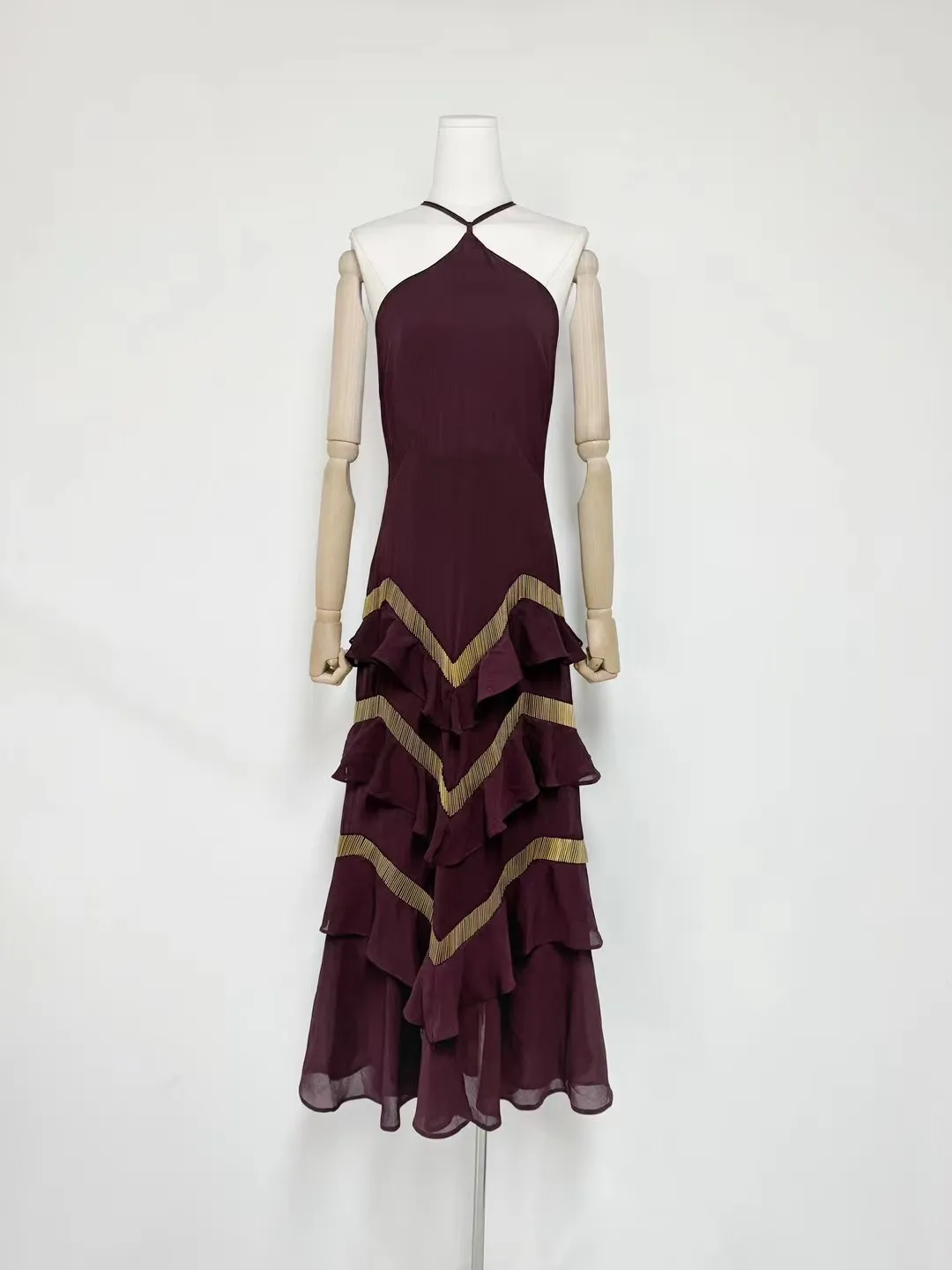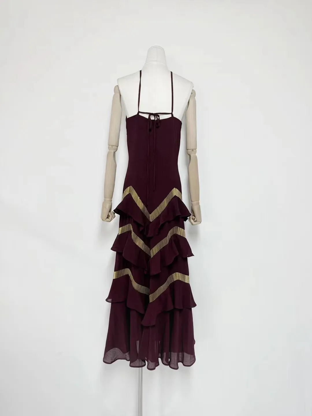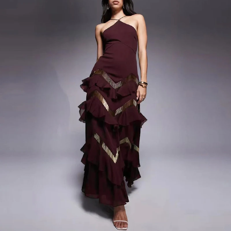 Factory Wholesale Designer Fashion Midi Dress Women Summer Halter Sleeveless Cascading Ruffles Slim Parties Stage Performances
