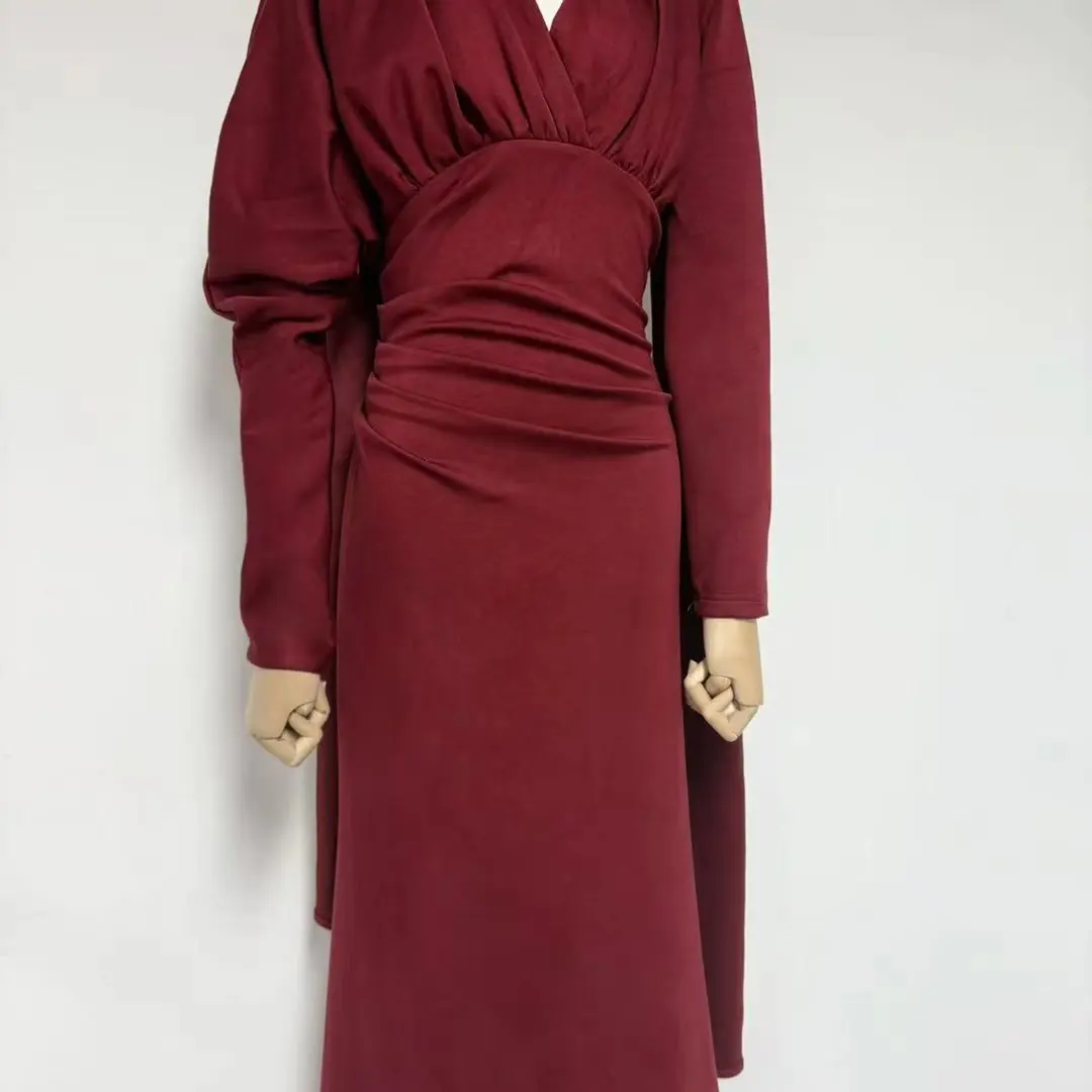 ZYHT 73902 Dark Green Blue Long Sleeve Simple Elegant Evening Dress Customize High End Women Clothing Manufacturer