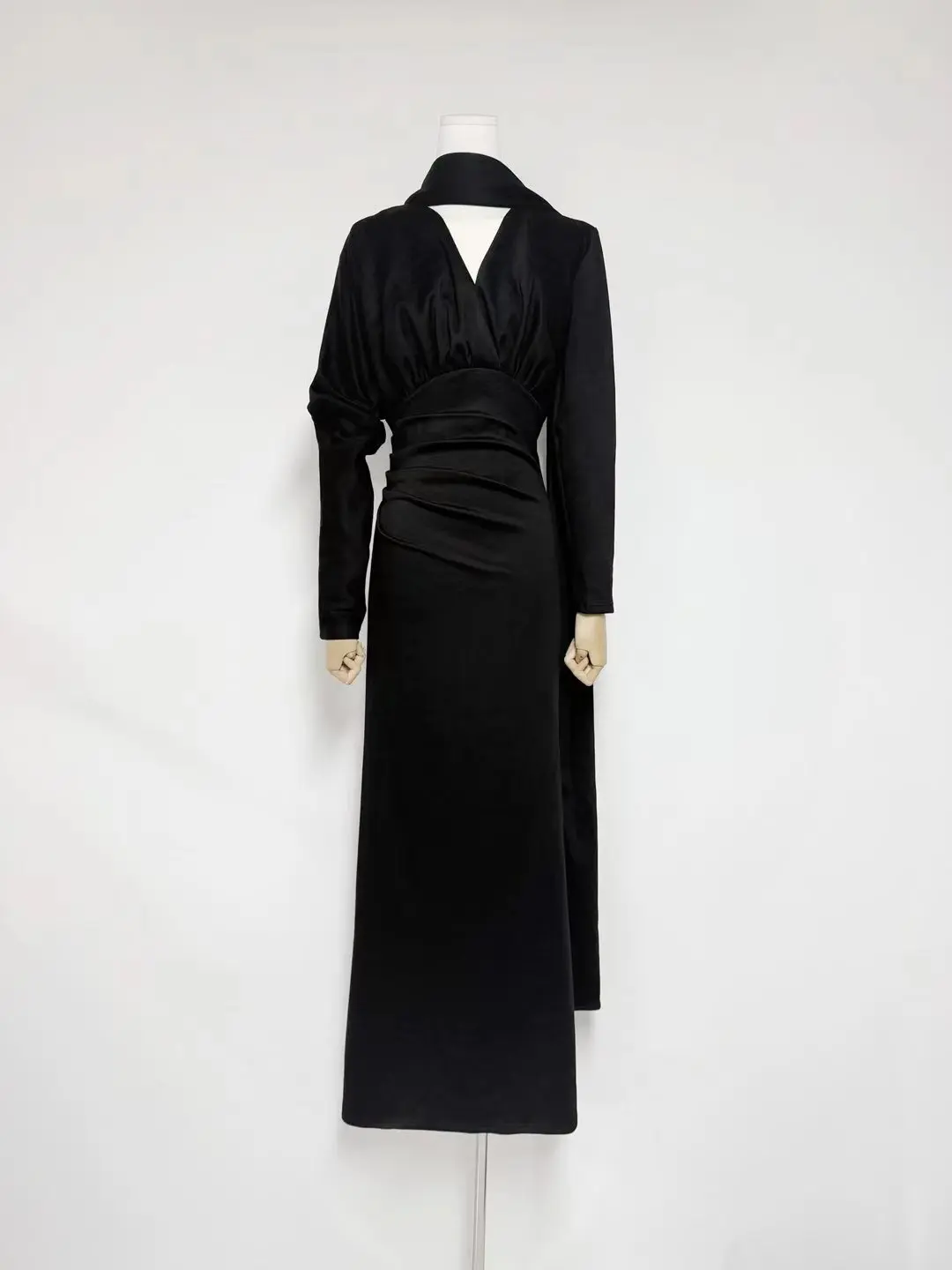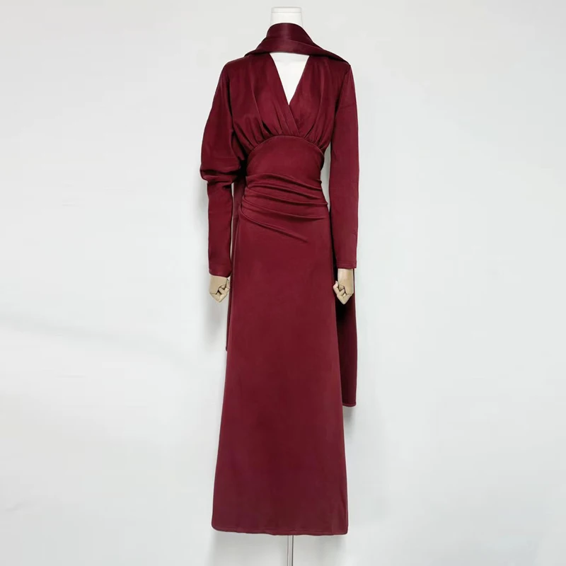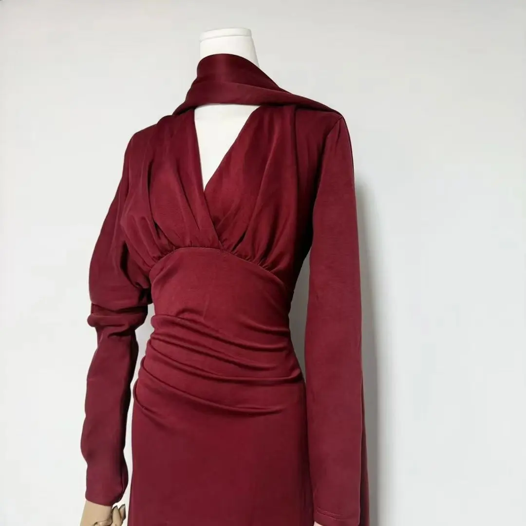 Factory Wholesale Designer Fashion Long Dress Women Autumn Winter V-Neck Long Sleeve With Scarf Socialite Parties Office