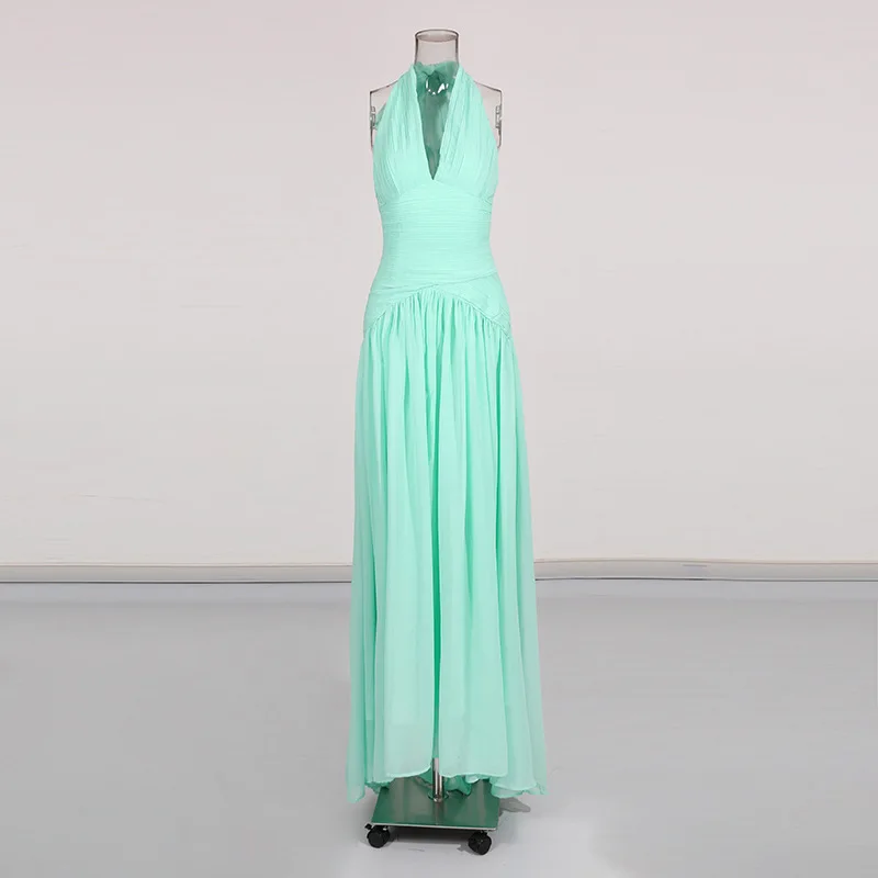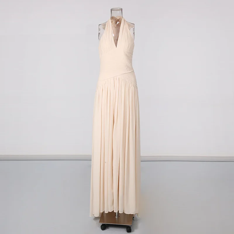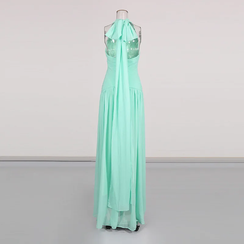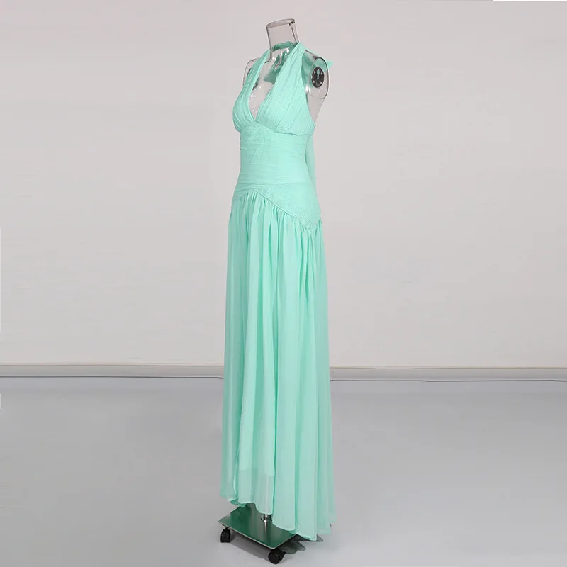 Factory Wholesale New Design Midi Sleeveless Dress Women Summer V-Neck Halter Slim Socialite Parties Stage Performances Wear