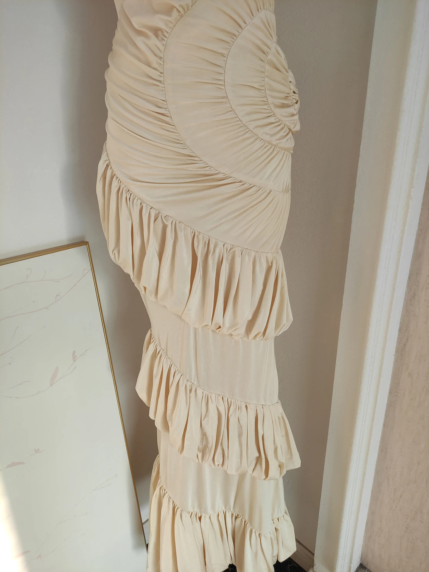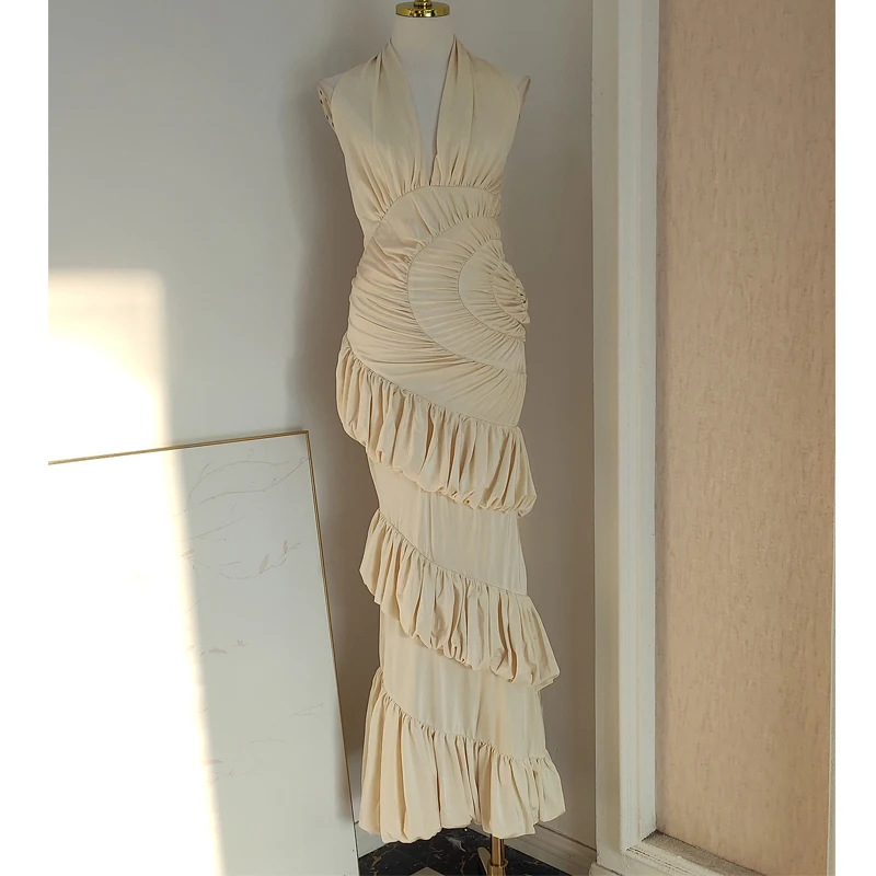 Factory Wholesale New Design Midi Sleeveless Dress Women Summer Halter Bandage Ruffles Elegant Parties Stage Performances