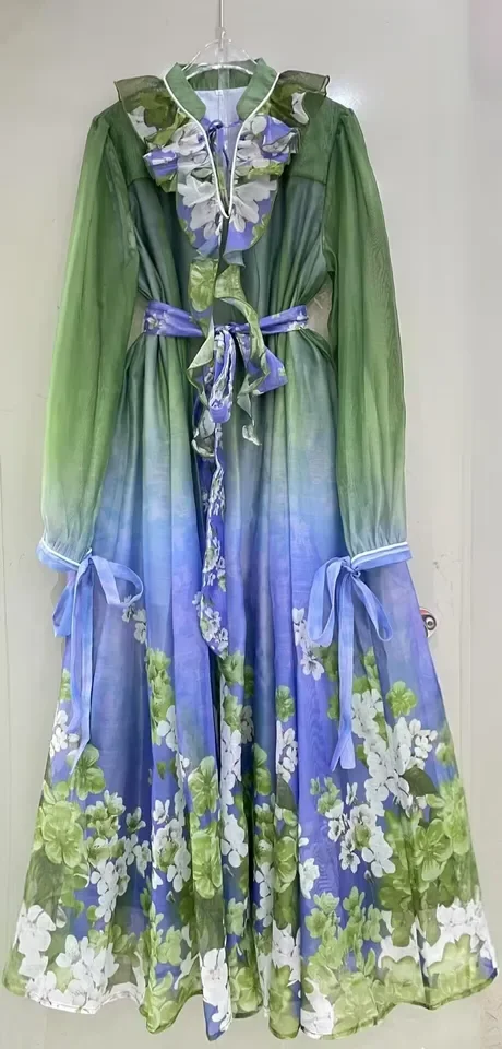 AELESEEN Bohemian Summer Midi Dress Women Design Fashion Ruffles Lacing up Bow Flower Print With Printed Lining Elegant Party