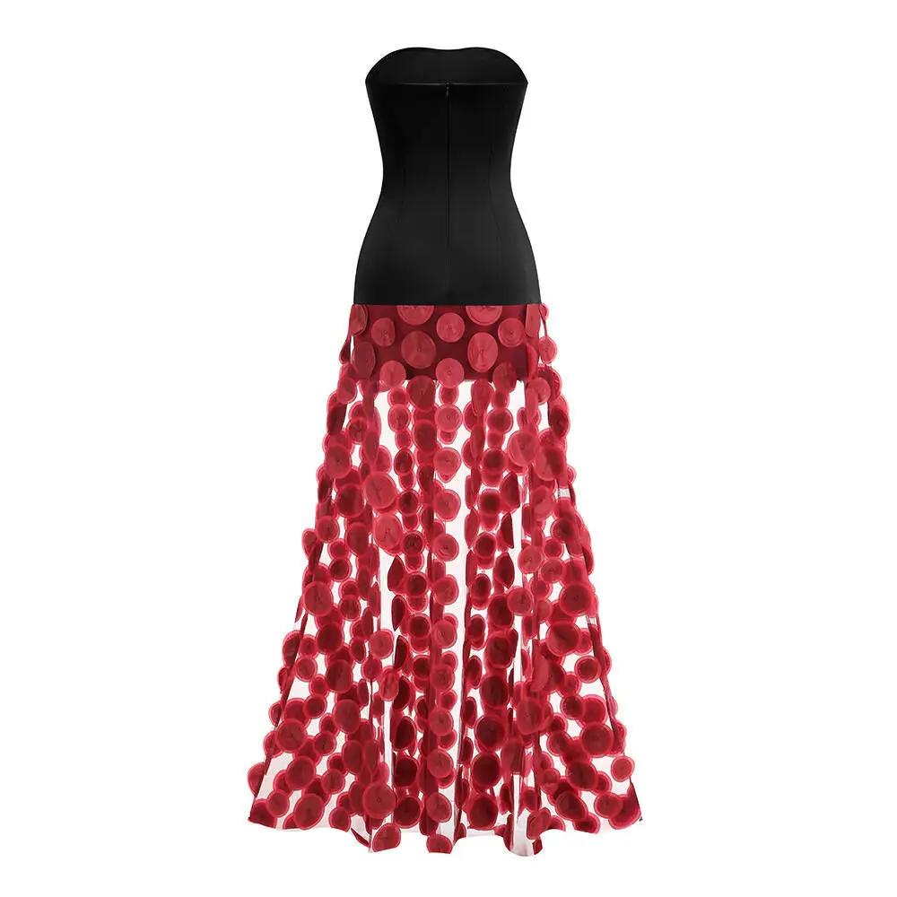 Factory Wholesale Temparament Midi Sleeveless Dress Women Patchwork Strapless Dots Mesh Elegant Bandage Socialite Parties