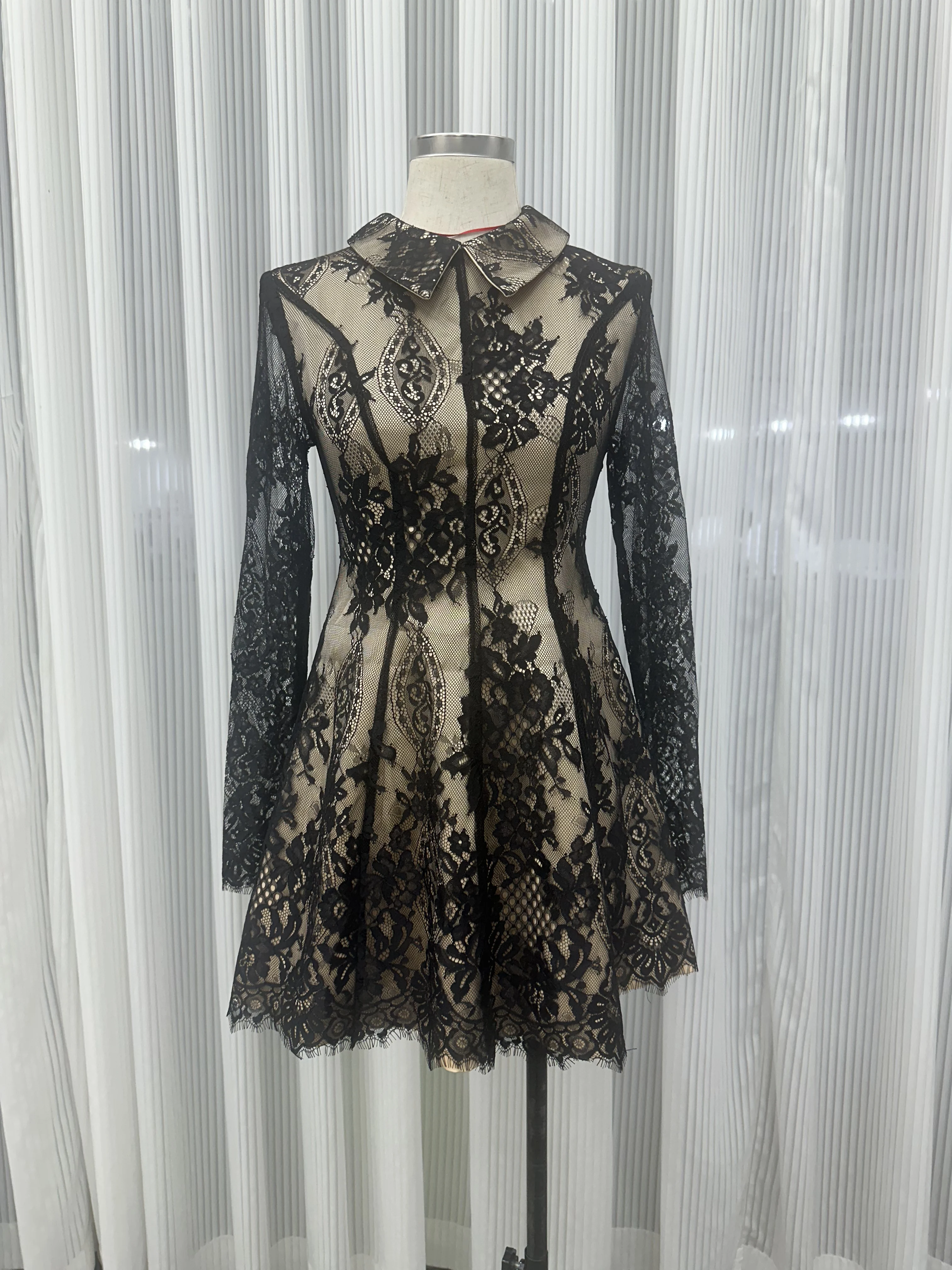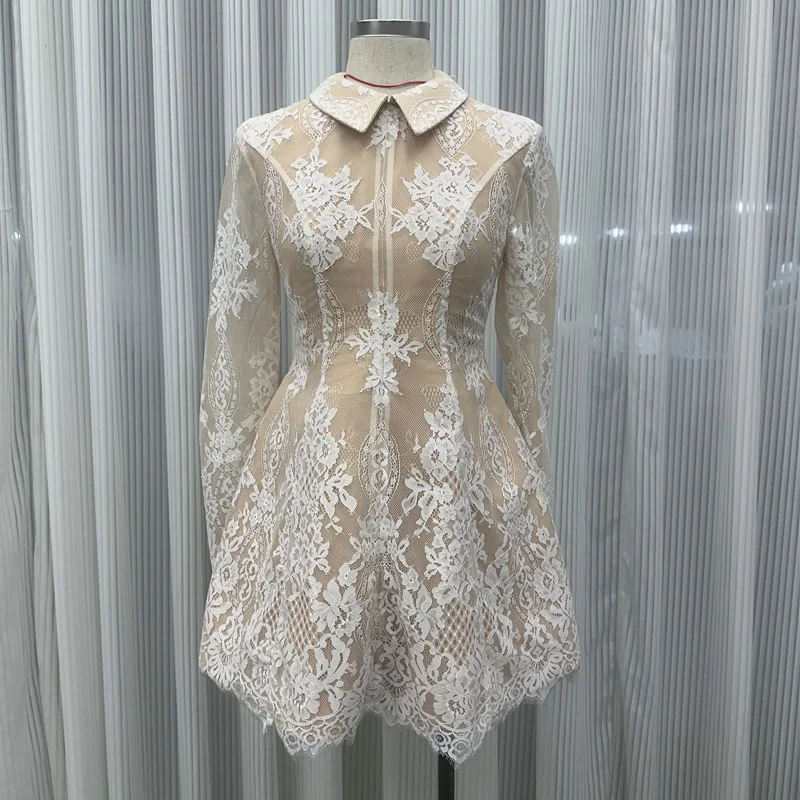 Factory Wholesale Designer Fashion Mini Lace Dress Women Spring Summer Long Sleeve Sexy Bandage Socialite Parties Stage