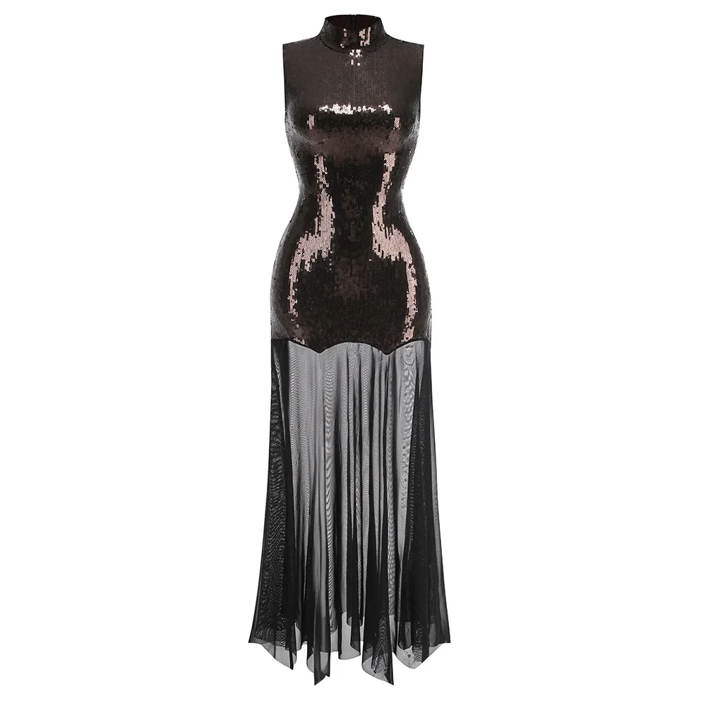 Factory Wholesale New Design Midi Sleeveless Dress Women Summer Sequined Bandage Socialite Parties Stage Performances Wear
