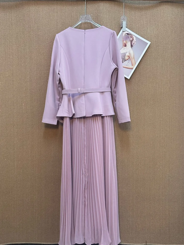 ZYHT 73907 Custom Design Long Sleeve High Neck Fashion Pleated Crystal Beads Ruched Knot High Slit Sexy Luxury Evening Dress