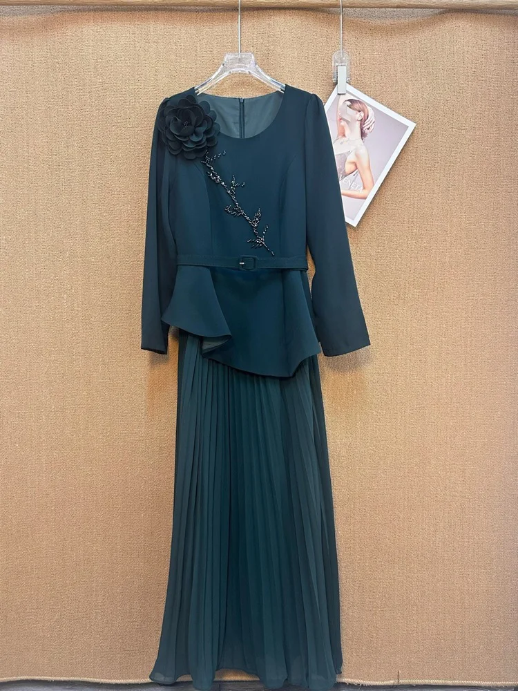 ZYHT 73902 Dark Green Blue Long Sleeve Simple Elegant Evening Dress Customize High End Women Clothing Manufacturer