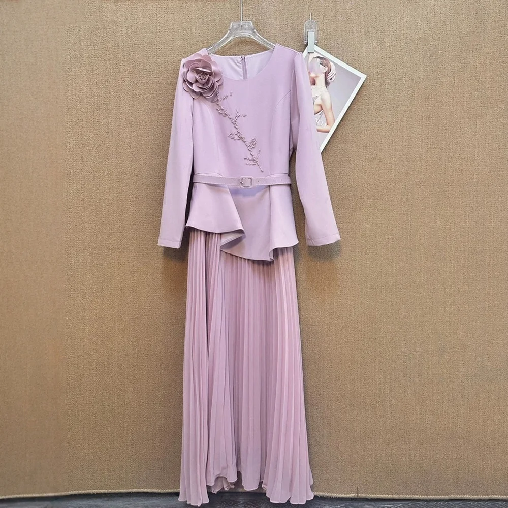 ZYHT 73906 Long Sleeve Deep V Neck High Slit Sexy Elegant Knot Long Floor Length 3D Flower Dark Green Purple Women Evening Dress