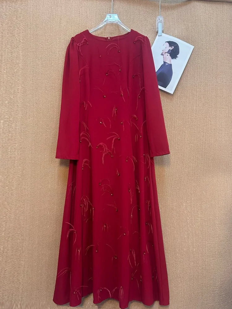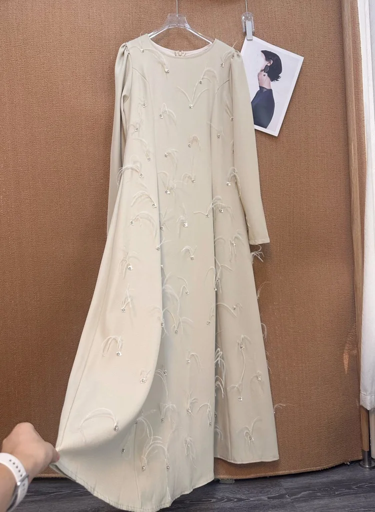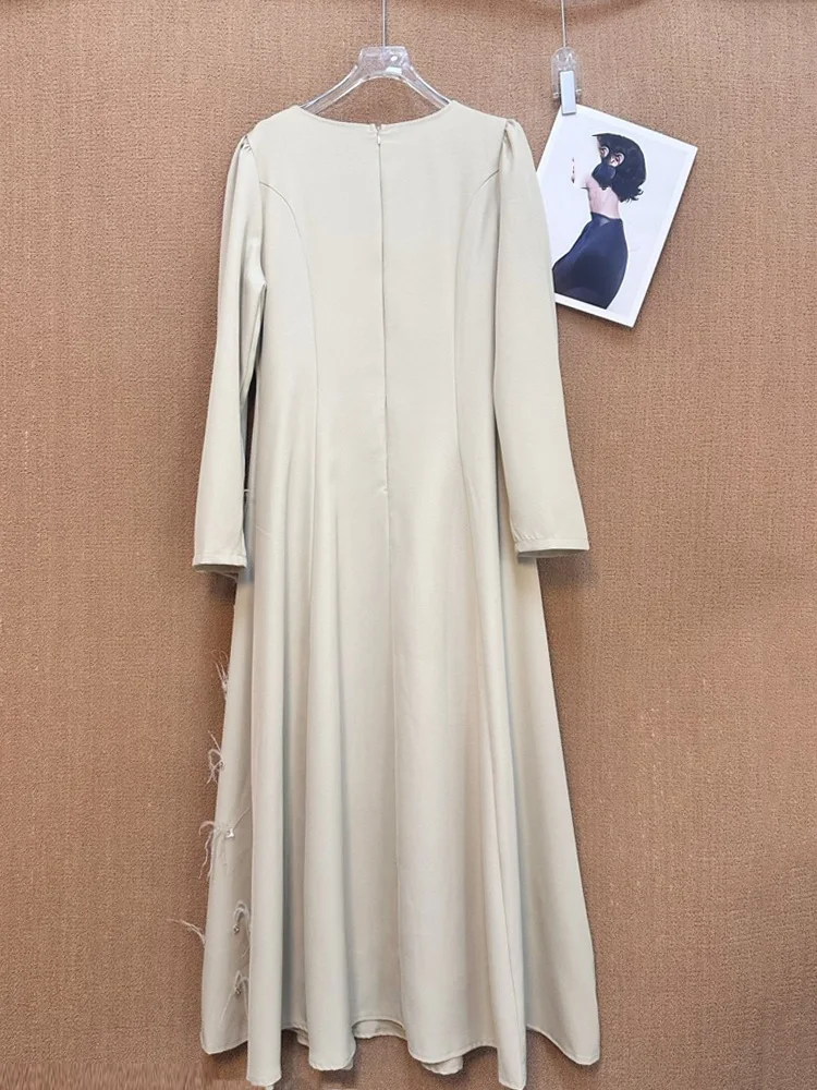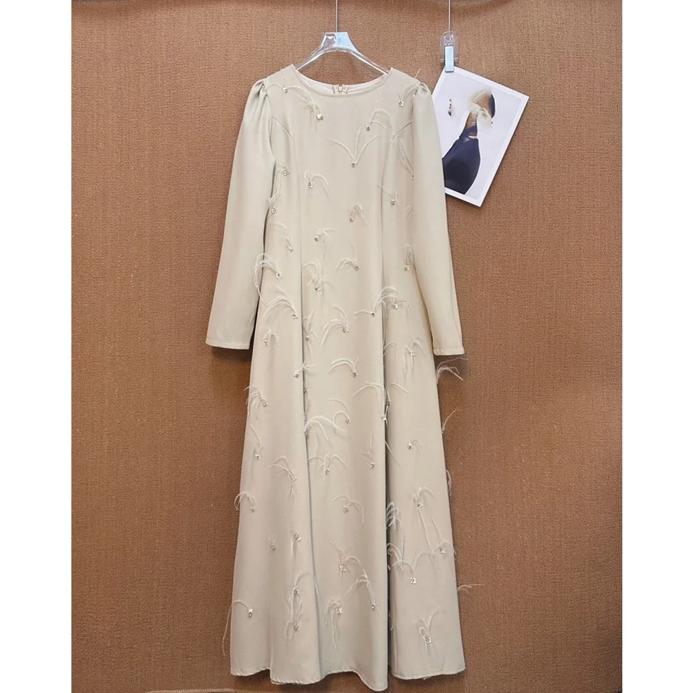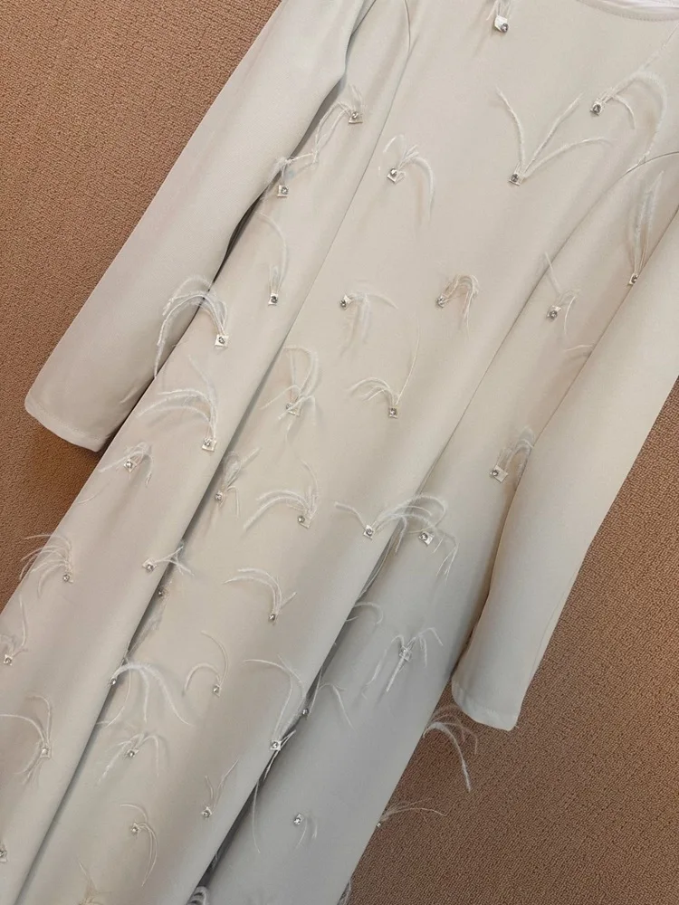 Factory Wholesale Runway Fashion Elegant Midi Dress Women Spring Autumn Feathers Diamonds Office Ladies Party Female Clothing