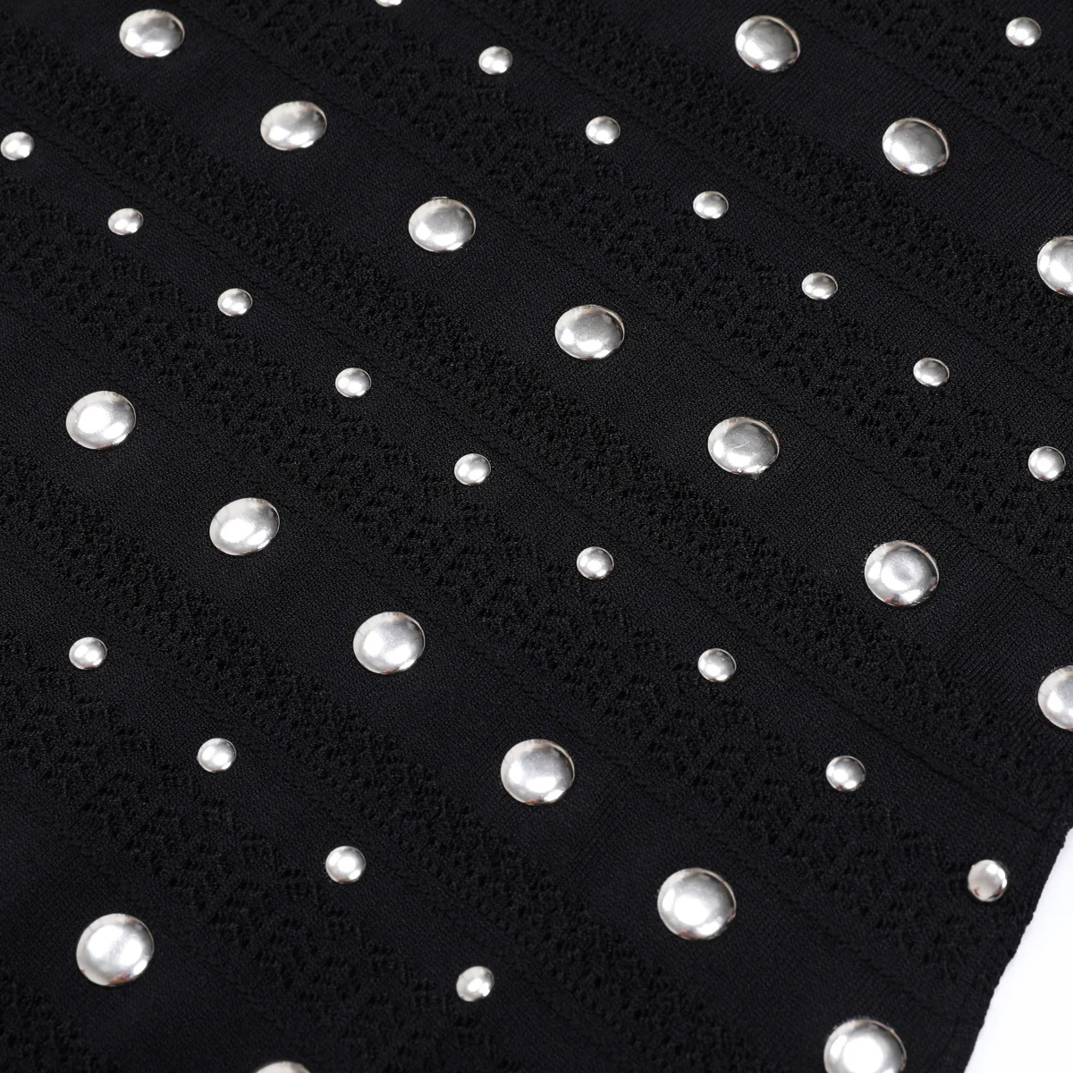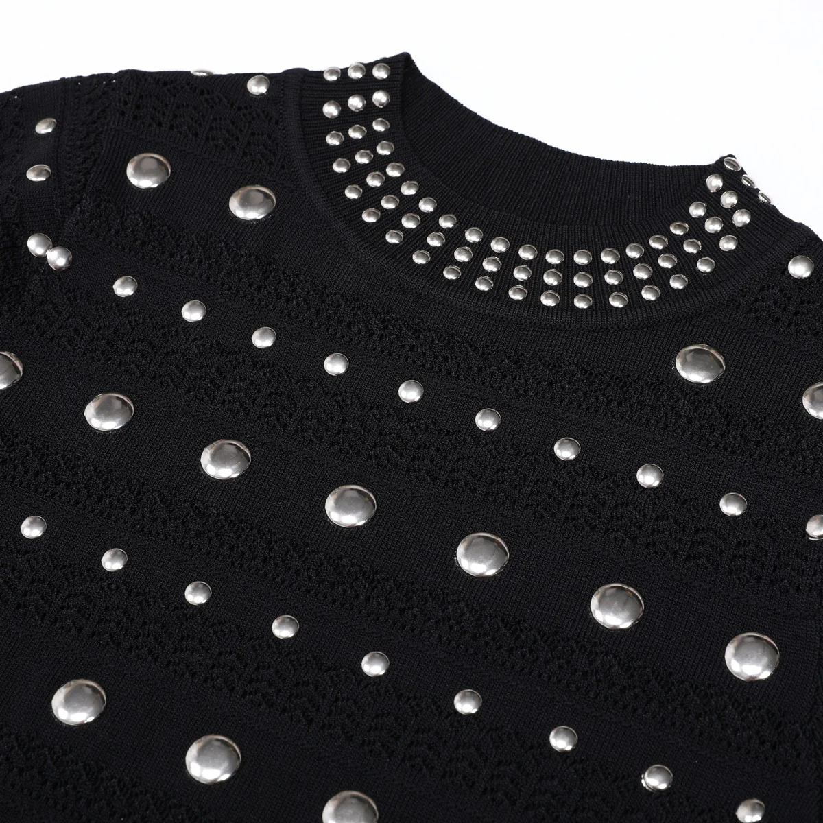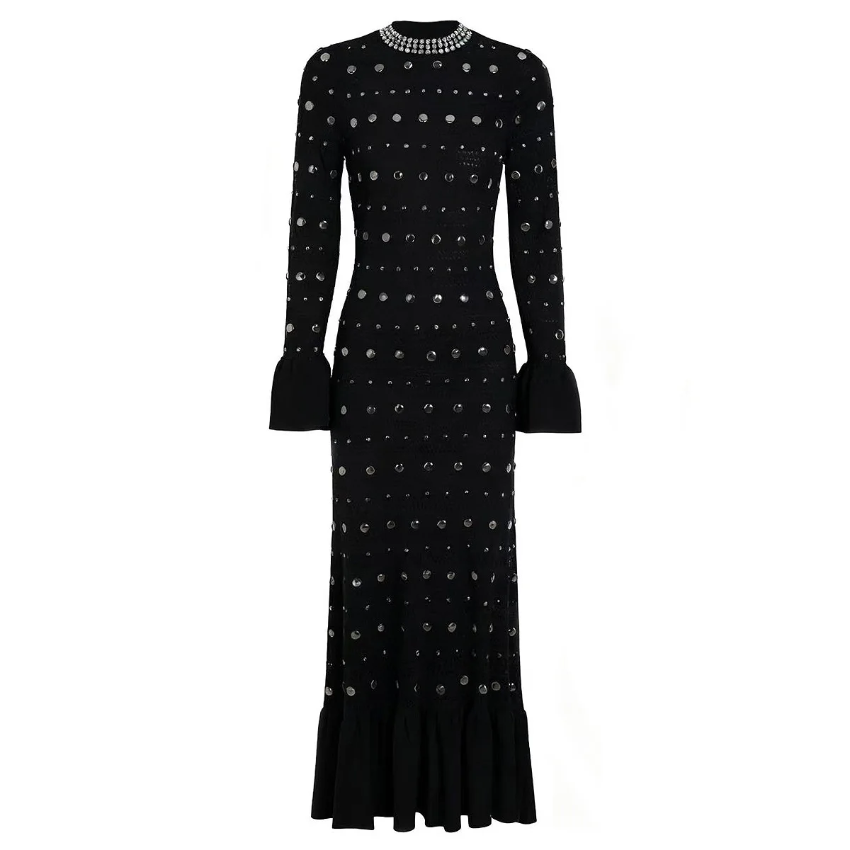 Factory Wholesale In-stock High-quality Luxury Spring/Fall New Arrive Round-Neck Beading Long Sleeve Slimming Knitted Dress
