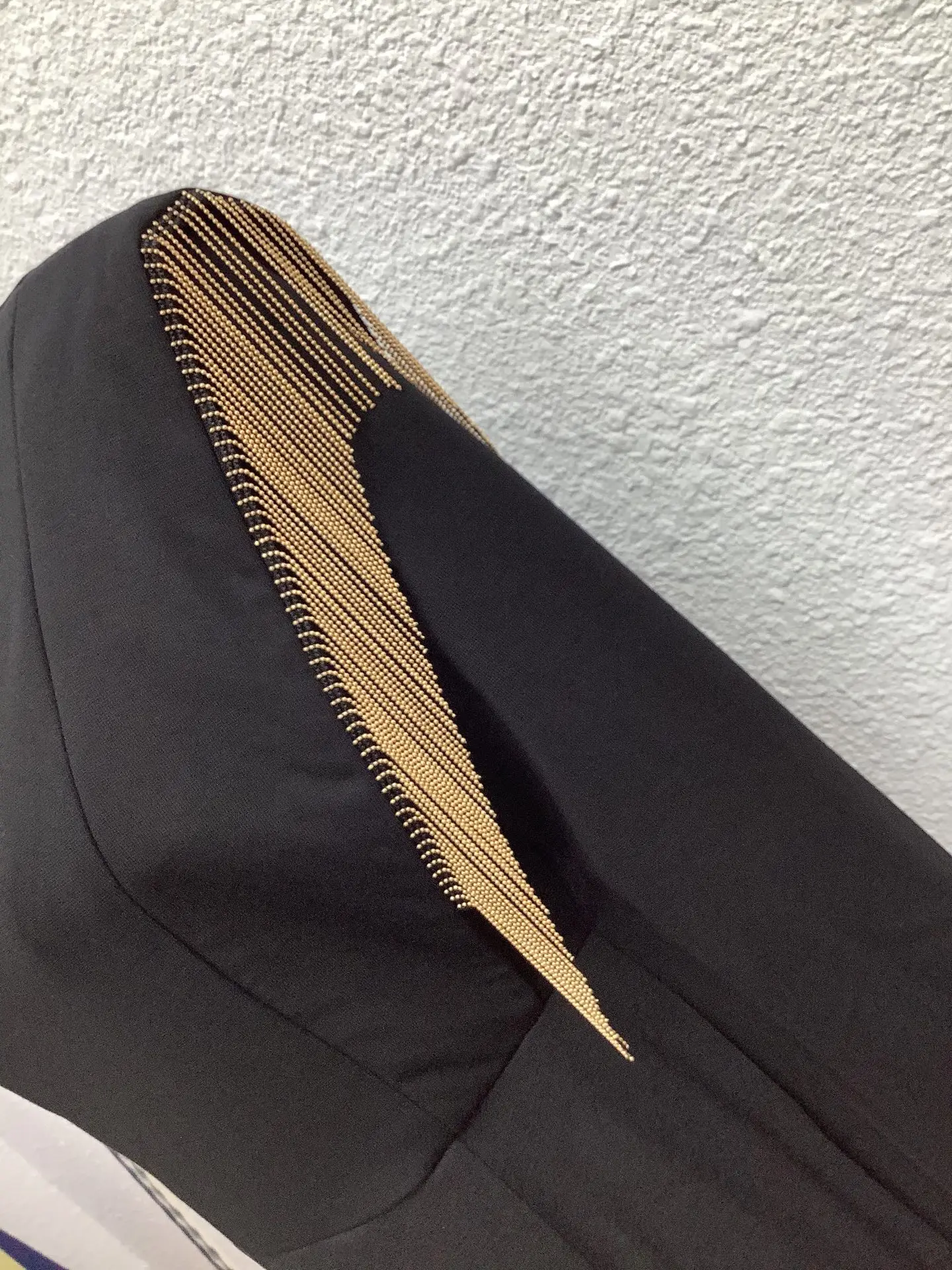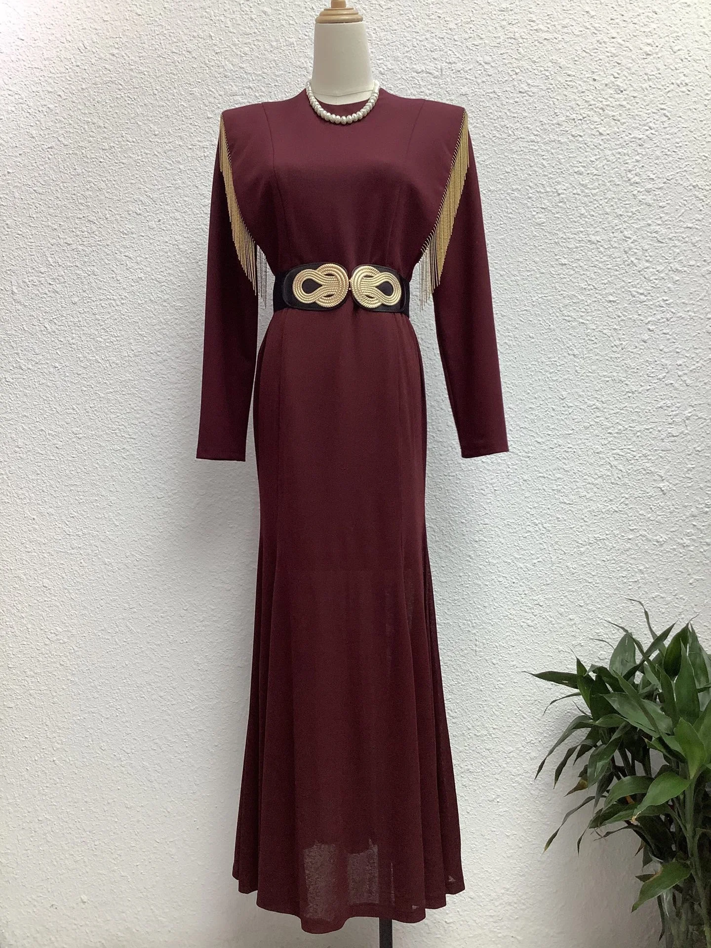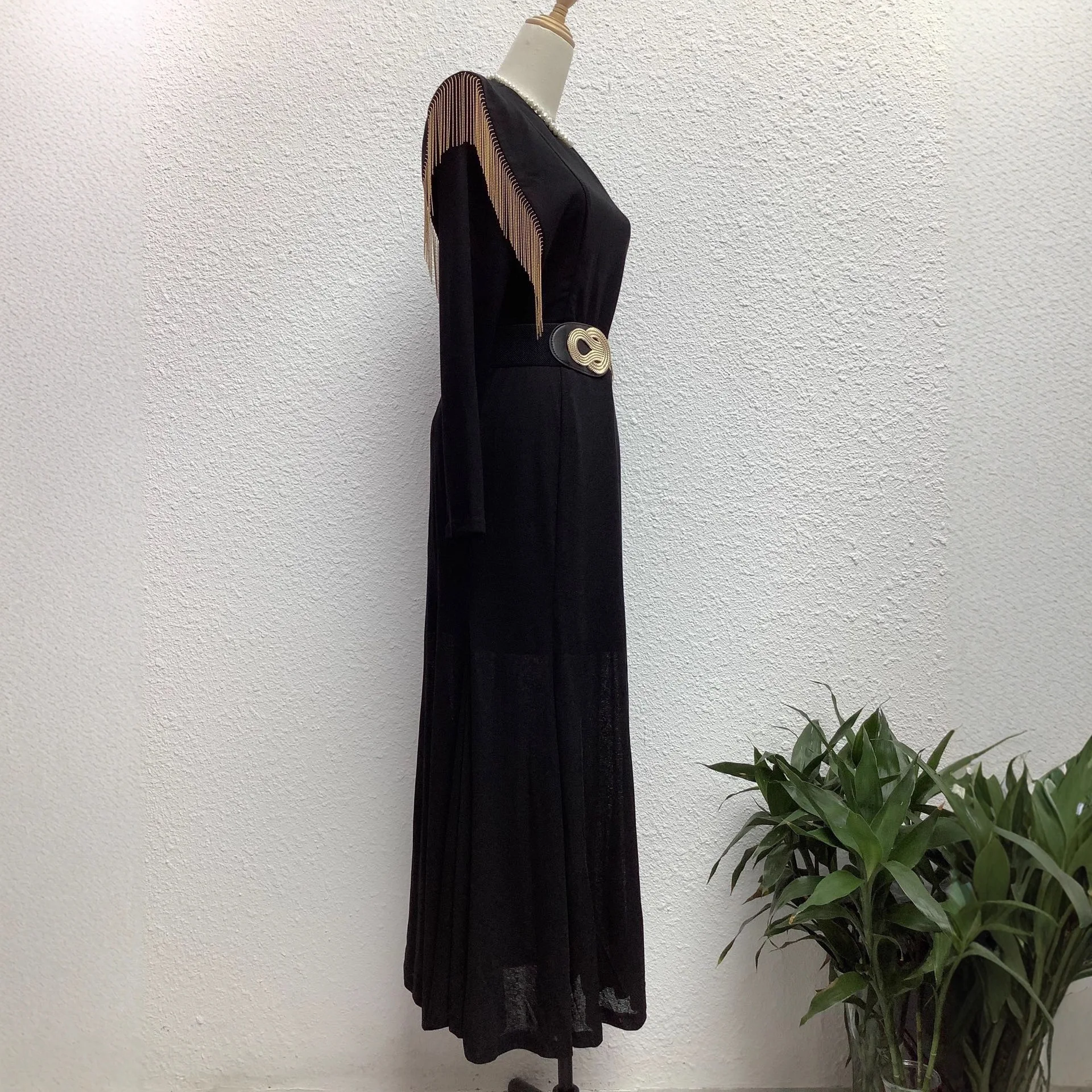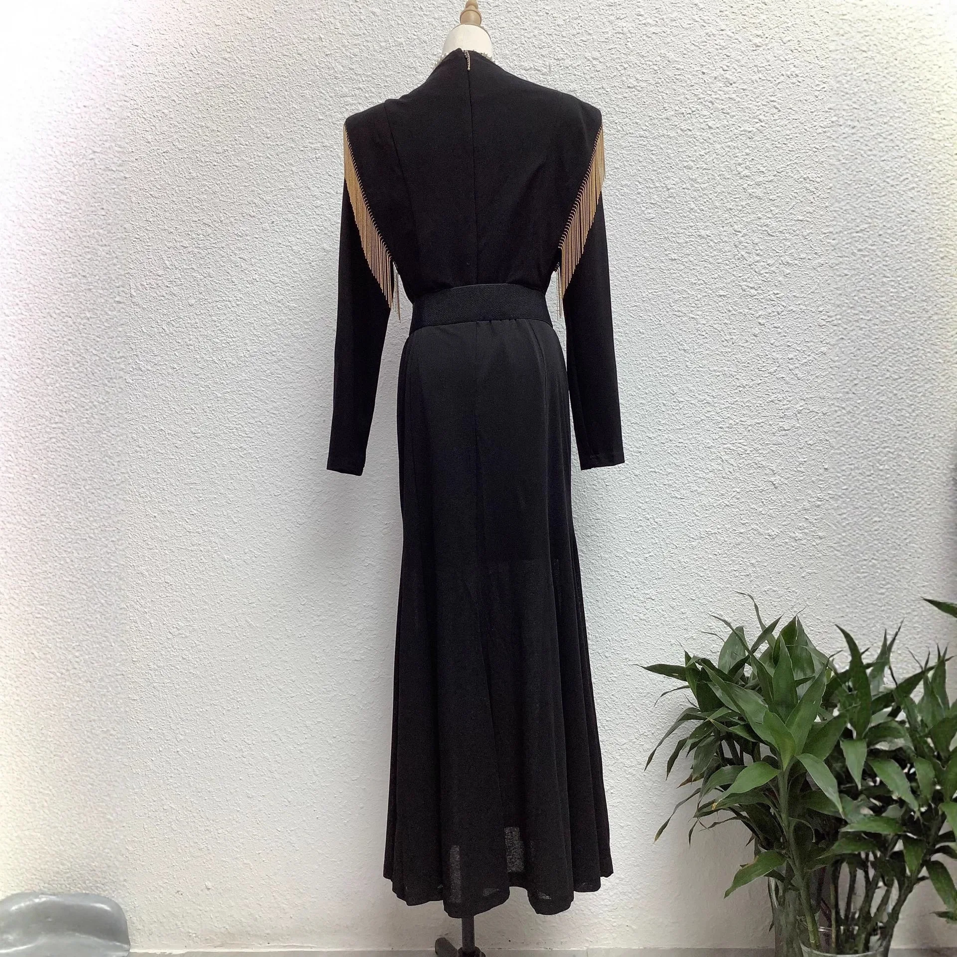 Factory Wholesale Long-sleeve Elegant Long Dress Women Autumn Winter Mermaid Golden Tassels Black Party Office Ladies Dress