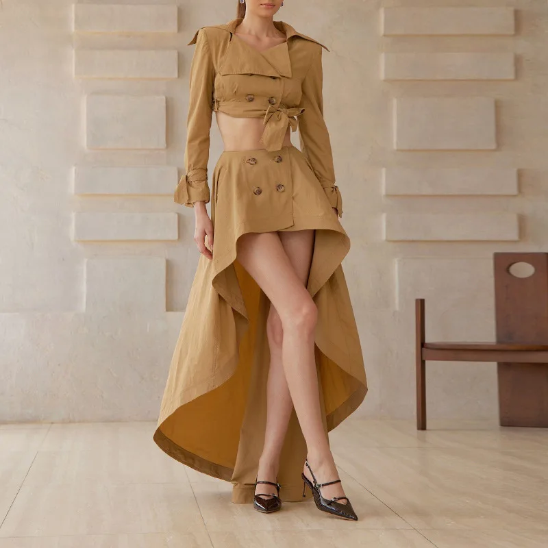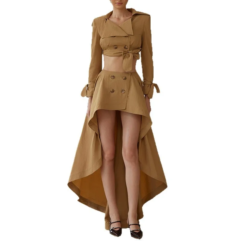 Factory Wholesale Fall/Winter New French Vintage Casual Shirt Bow Fitted Lapel Short Top + High-Waisted Irregular Skirt Set