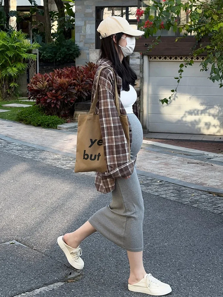 Maternity Knitted Midi Skirt Without Belly Support for Autumn & Winter - Straight/Curved Hem Styles for Petite Pregnant Women