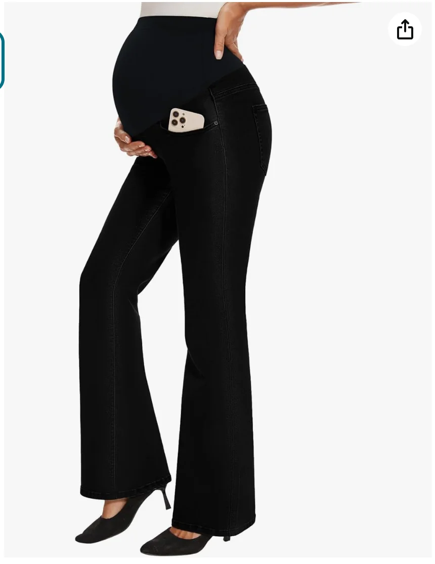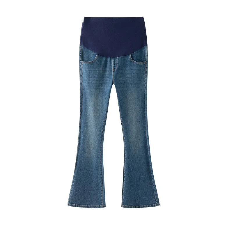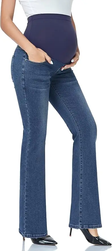 Women's Stretch Maternity Boot-cut Jeans, Belly Pocket, Flared Jeans, Maternity Wear