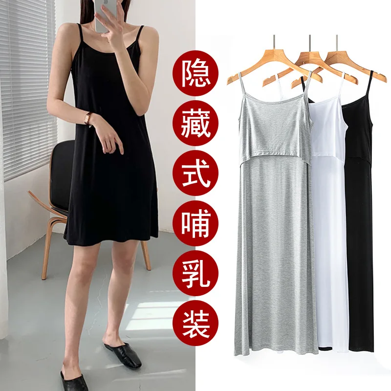 Wholesale Breastfeeding Midlength Dresses Sleeveless Strapless Modal slip Dresses