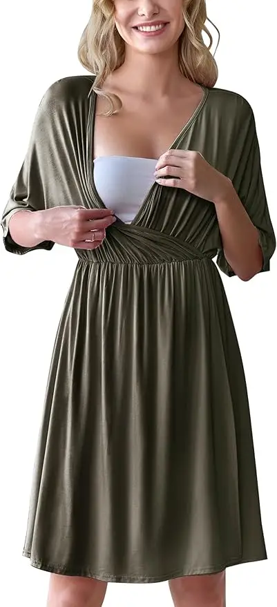 New Summer Postpartum Style Plain Color Nursing Short-Sleeved Tummy-Brace Slimming and Fitting Tight Dress for Pregnant Women