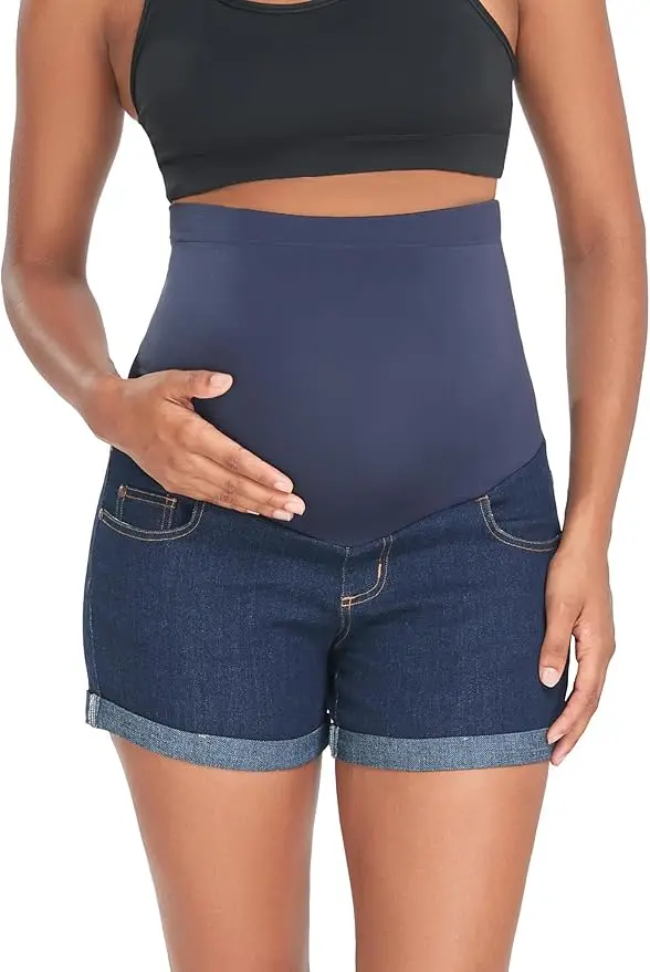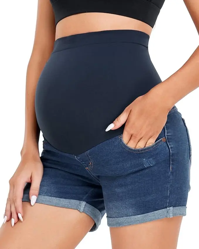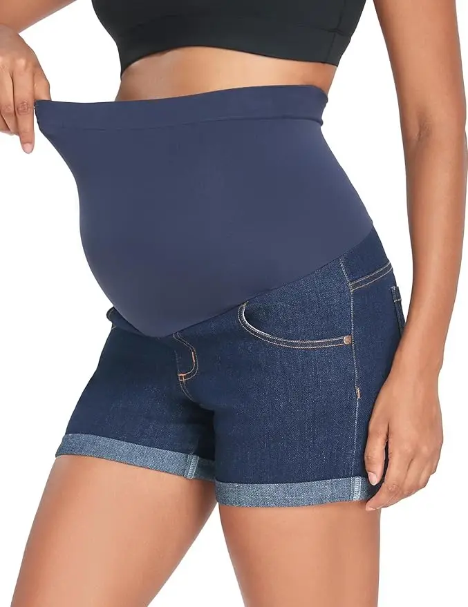 Summer Tight Maternity Jeans Shorts with Abdominal Support for Pregnant Women
