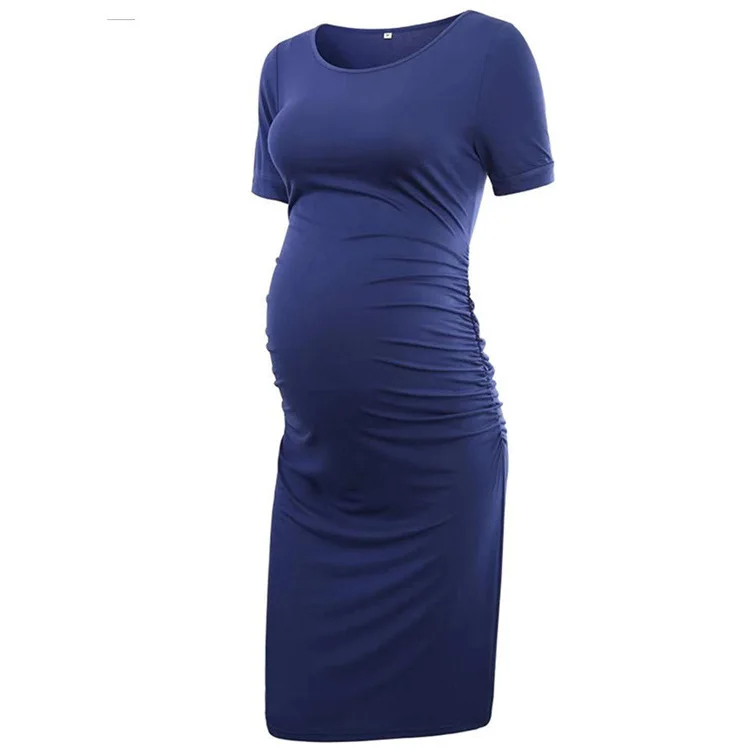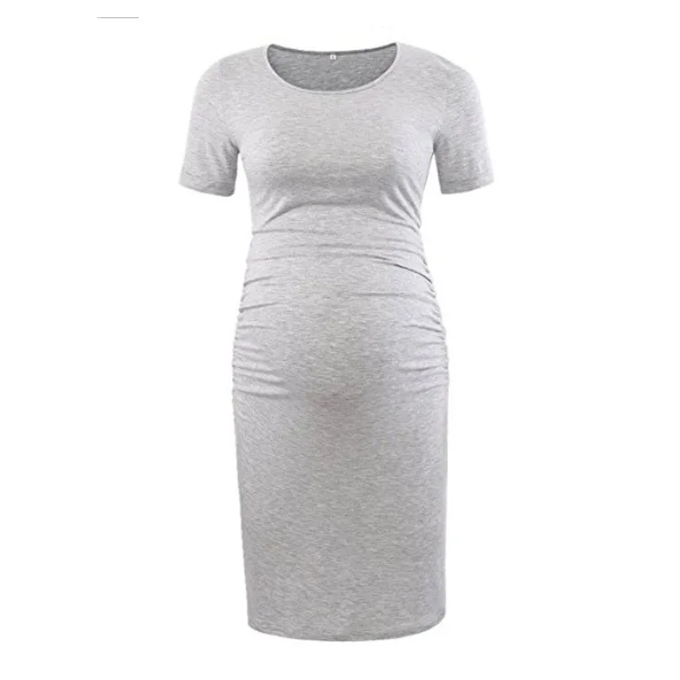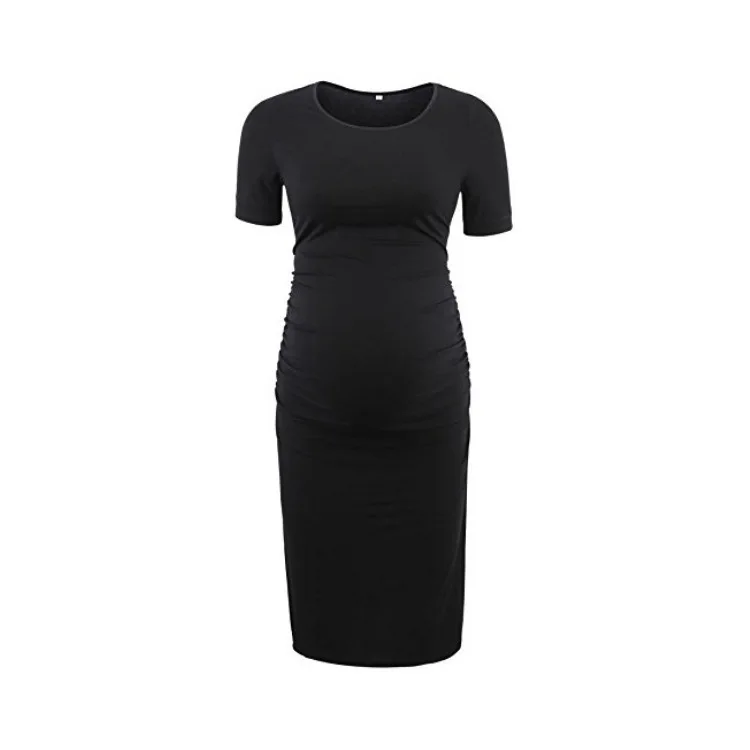 Round-neck Short-sleeved Maternity Dress with Built-in Support Made of Polyester Fabric