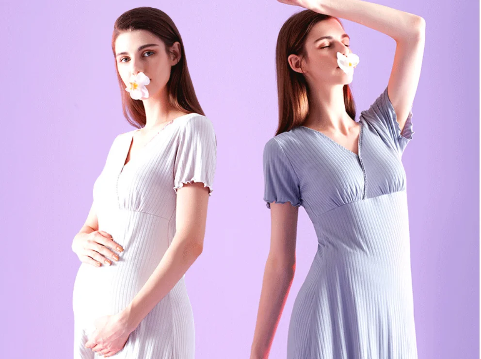 Pregnant Woman Sleep Skirt Summer Dress Lightweight Style Postpartum Dress Suitable for Breastfeeding