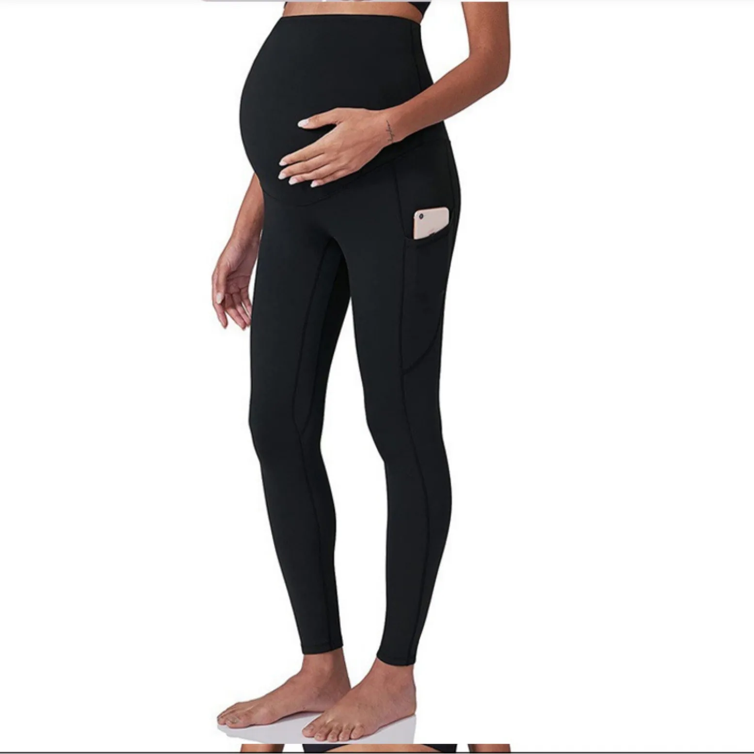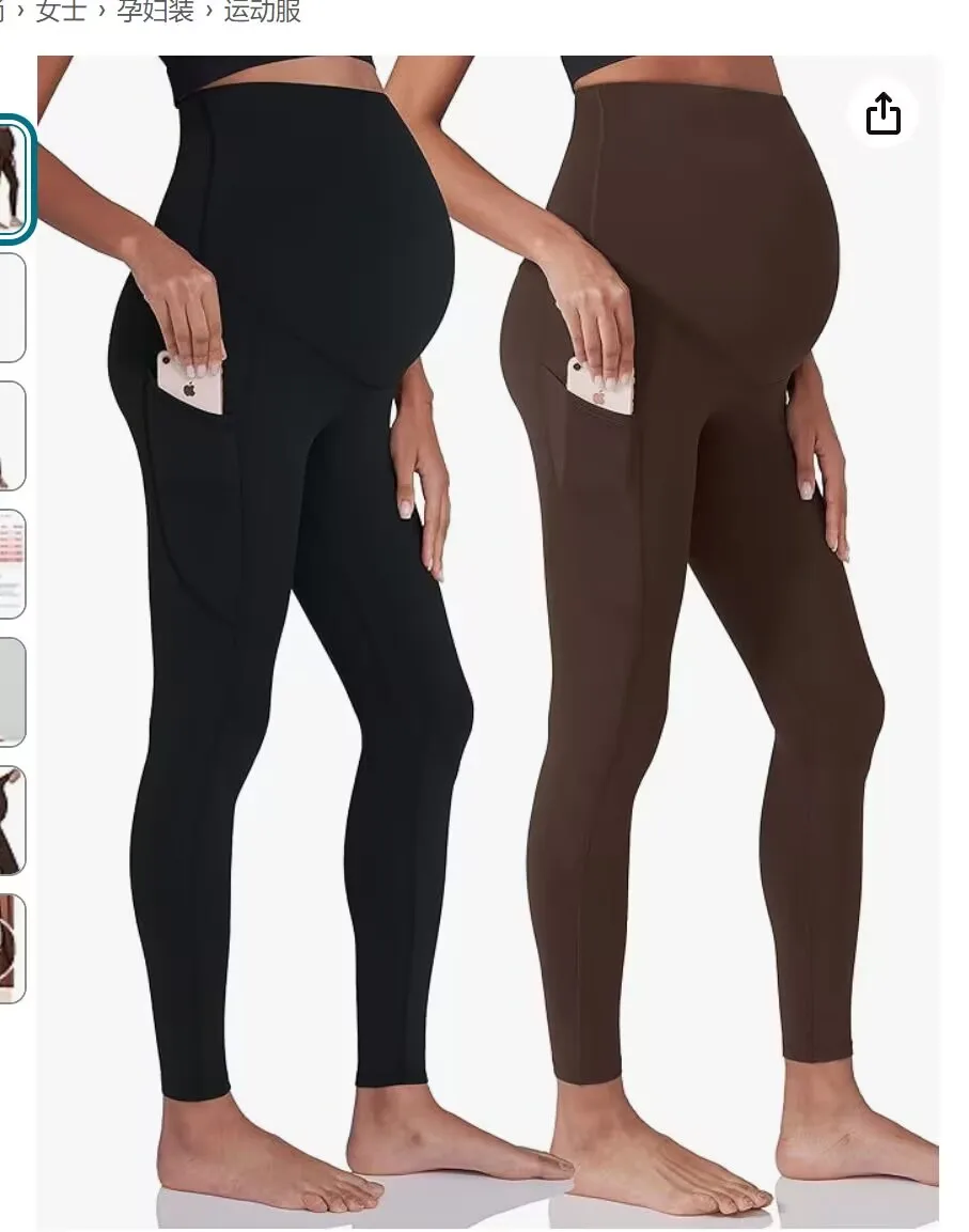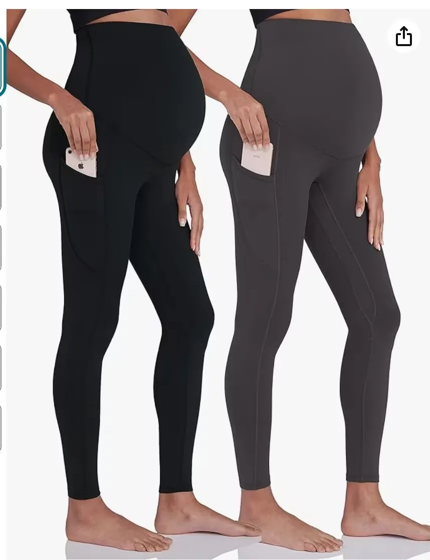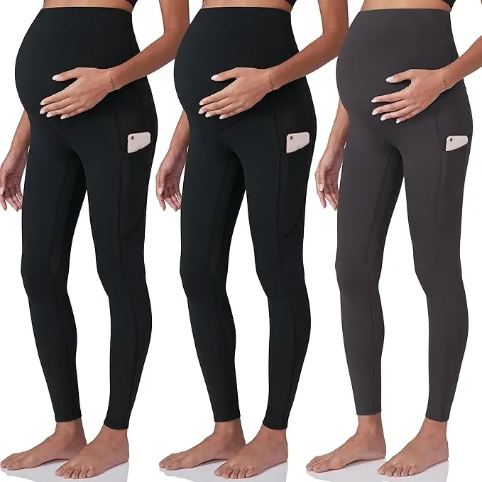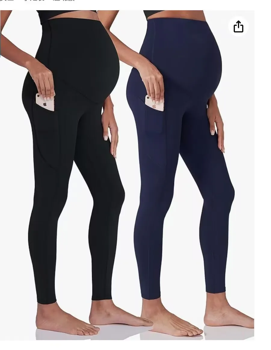 New Maternity Pants Yoga Waistband Pocket Fabric Stretch Free