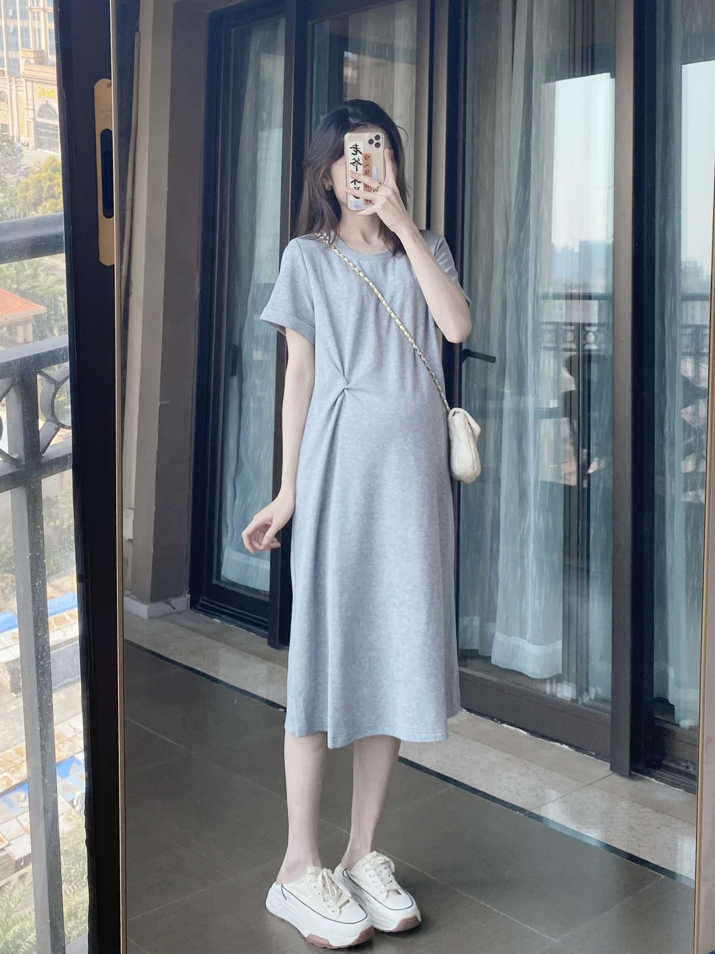 Summer Casual Slimming Loose Round-neck Short-sleeved Dress for Pregnant Women