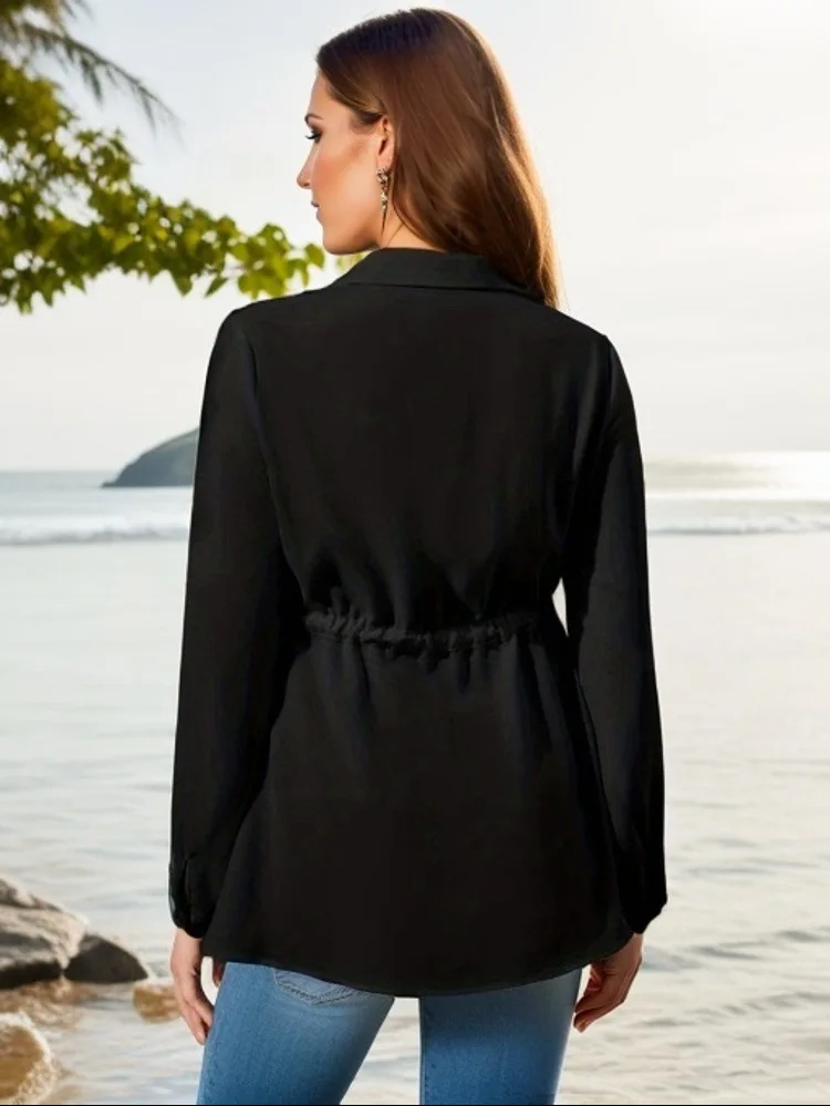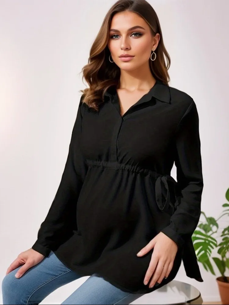 Solid Color V-Neck Long Sleeve Maternity Blouse Fashion Top