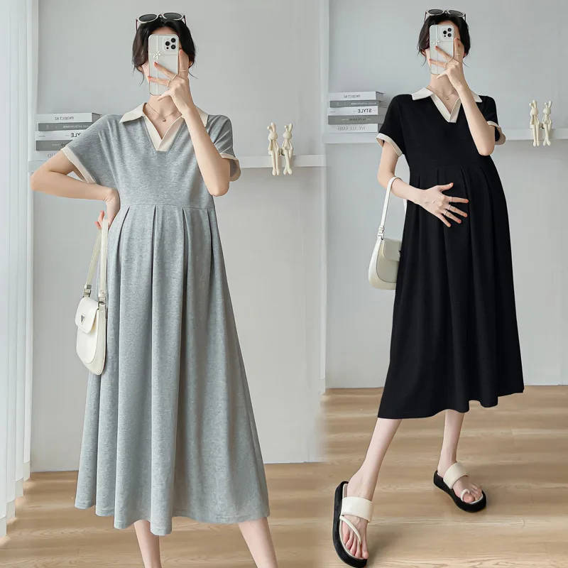 Pregnant Korean Version of Fashion Loose Mid-length Maternity Dress