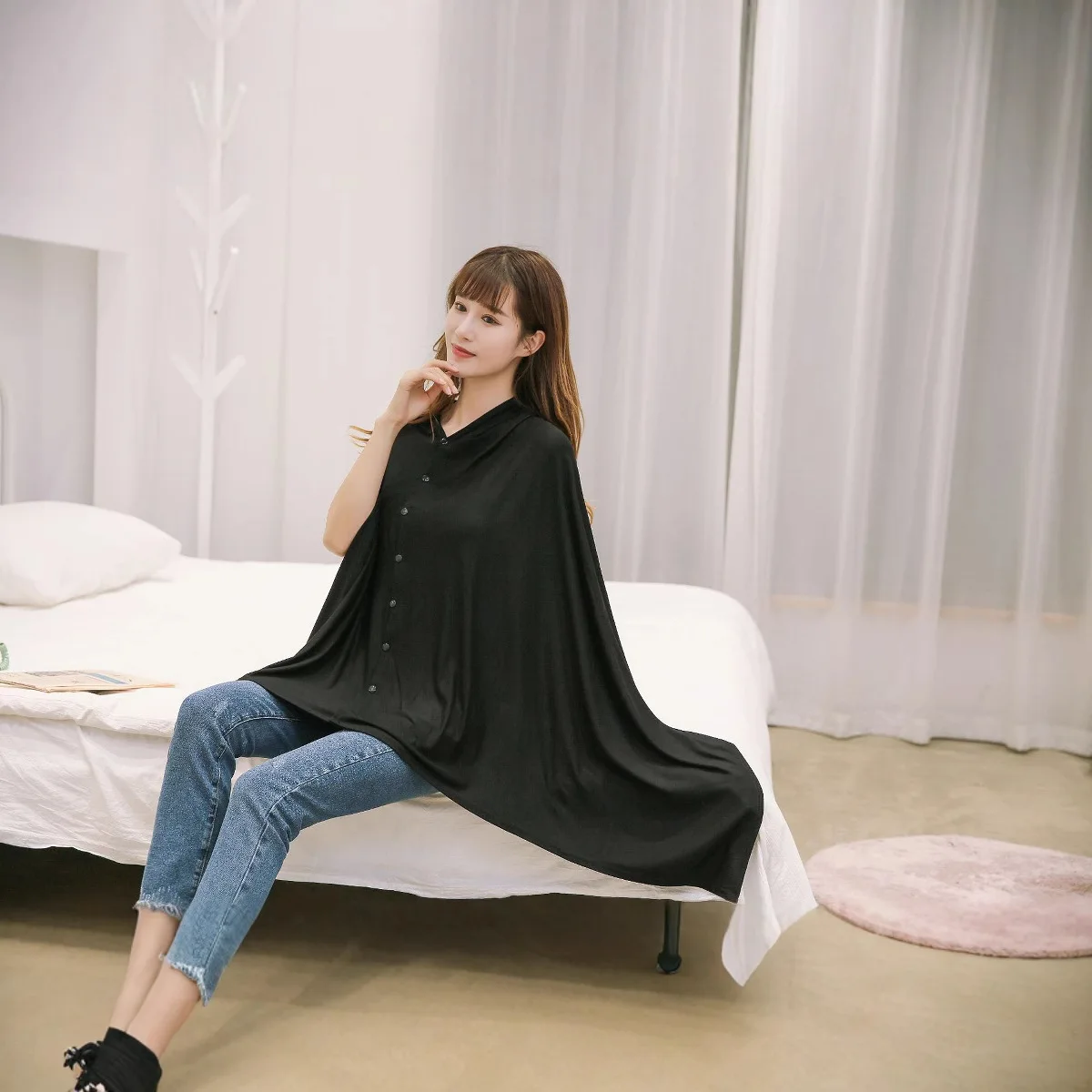A Pregnant Woman Wearing a Shawl to Cover Her Breasts and a Nursing Cover Dress When Going Out to Breastfeed Her Baby.