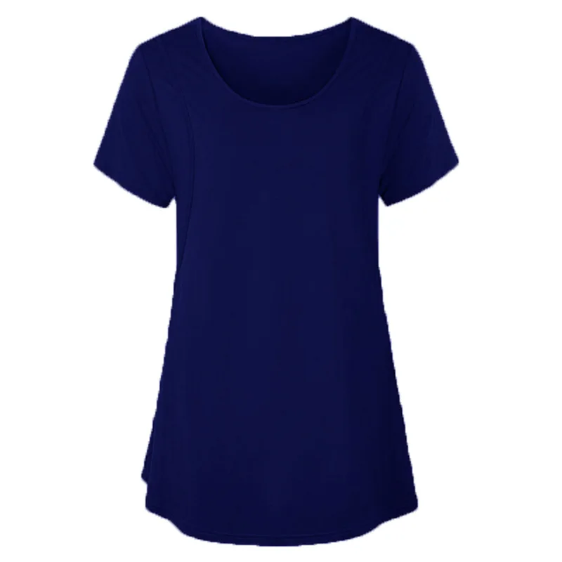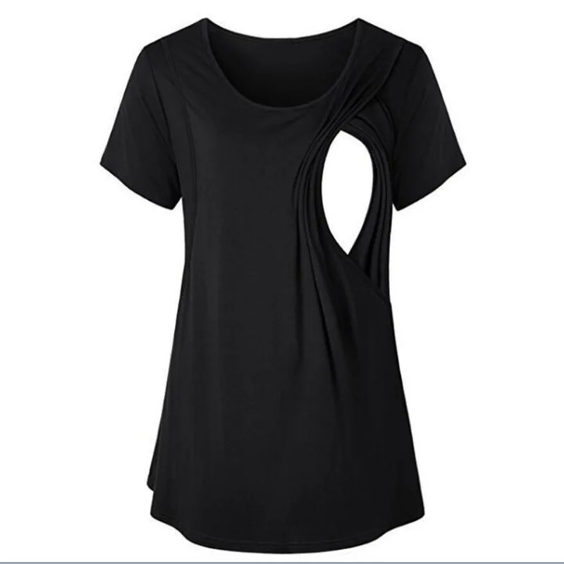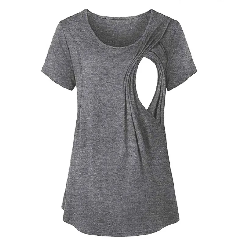 New Style Round-neck Plain-color Side-opening Short-sleeved Maternity Top with Pure Cotton Fabric for Breastfeeding Mothers.