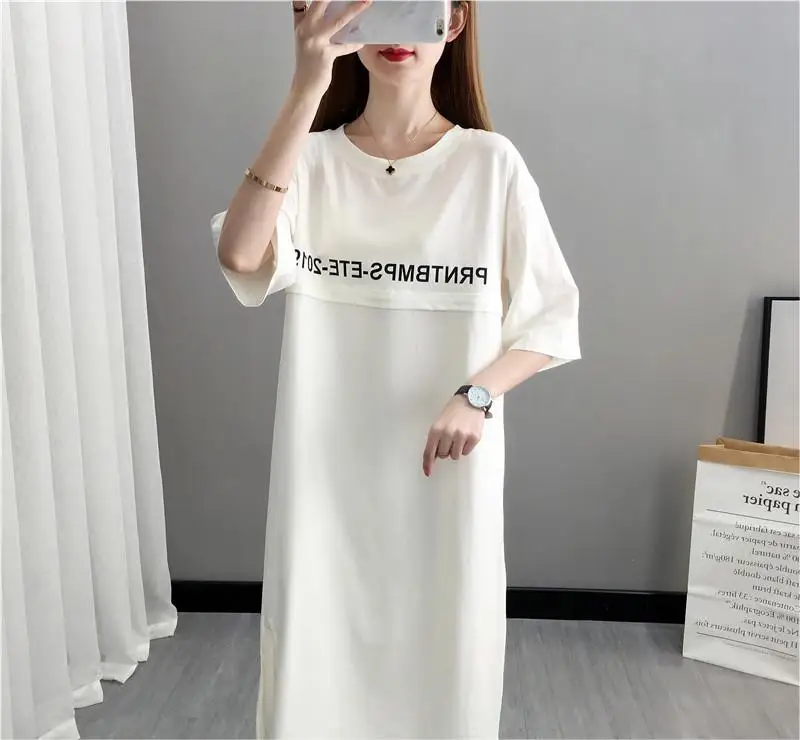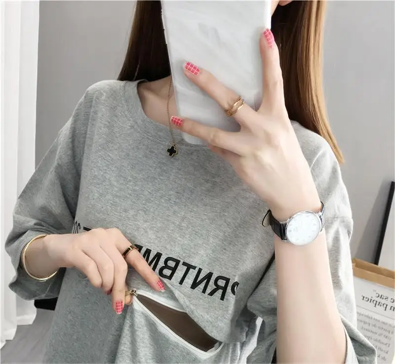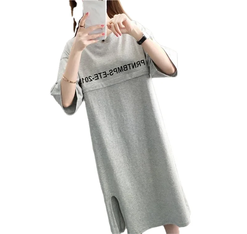 Casual Nursing Dress With Long Knitted Print Skirt Plus Size for Spring and Autumn Breastfeeding