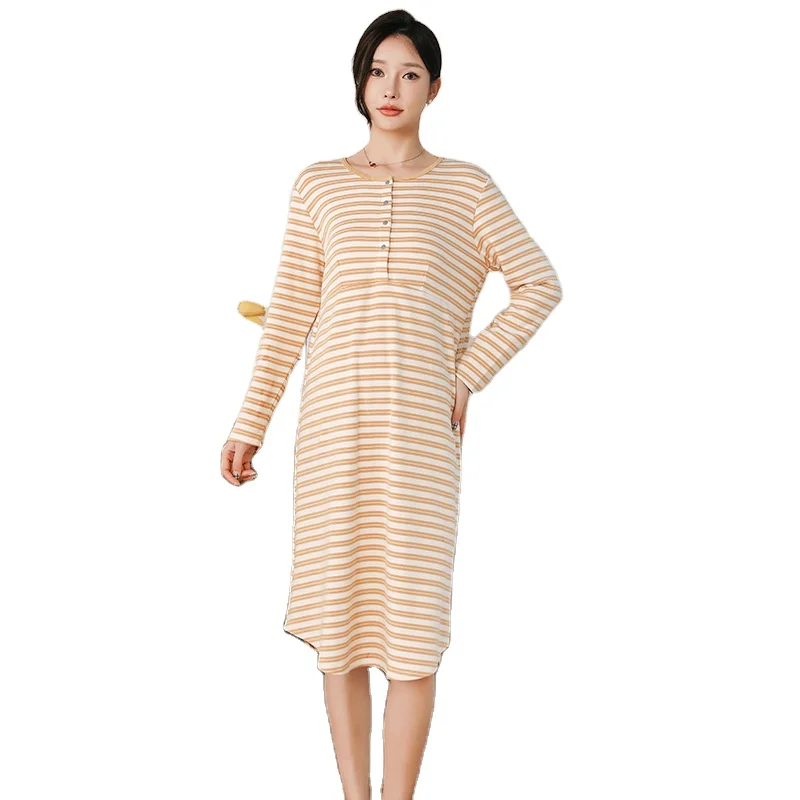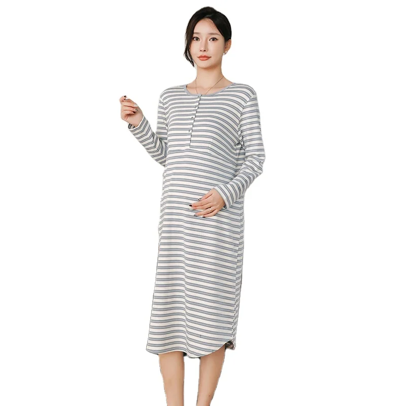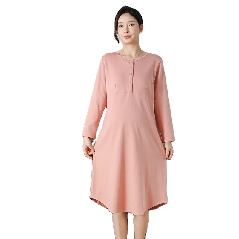 Four Seasons Cotton Nursing Pajamas Bra-Free Nightdress for Postpartum & Expectant Maternity Home Dress for Maternity Room