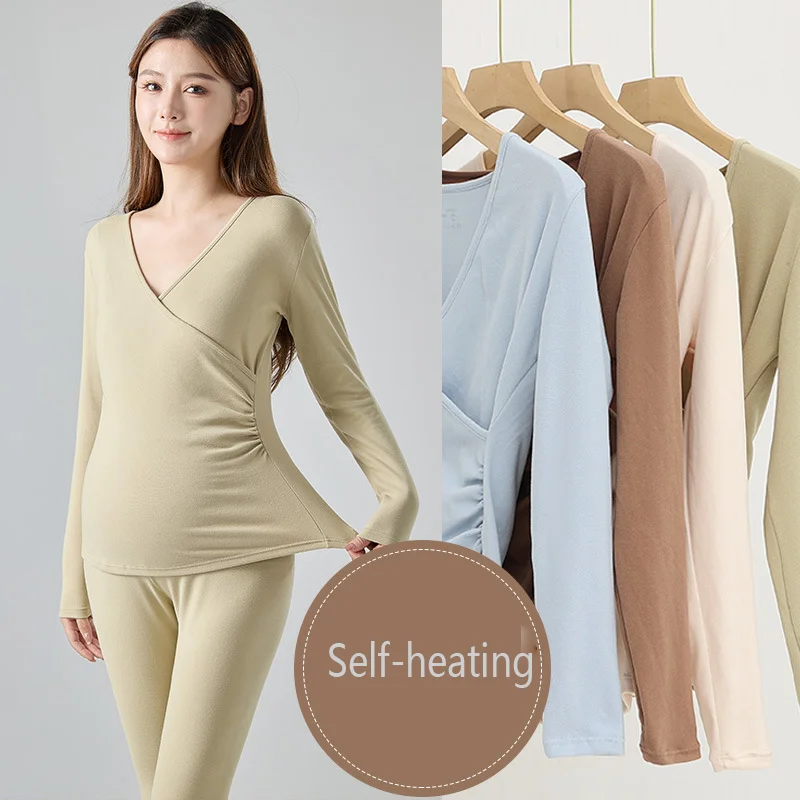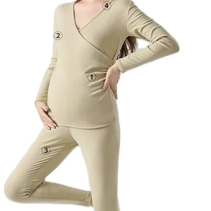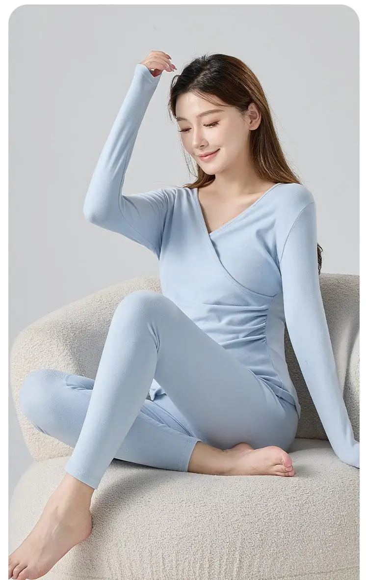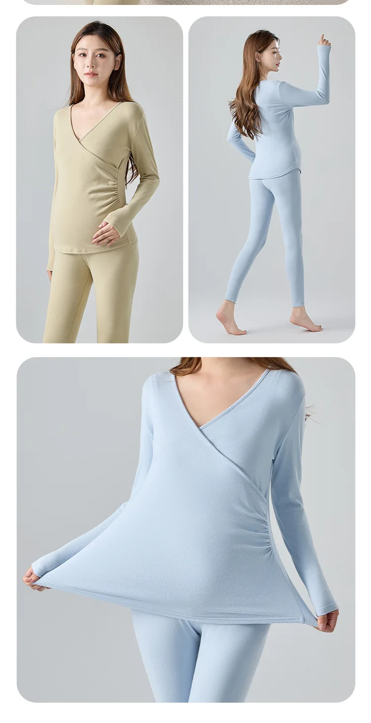Warm Autumn Winter Long Johns Quality Pregnant Women and Postnatal Pajamas Breastfeeding Tops for Confinement Period Use