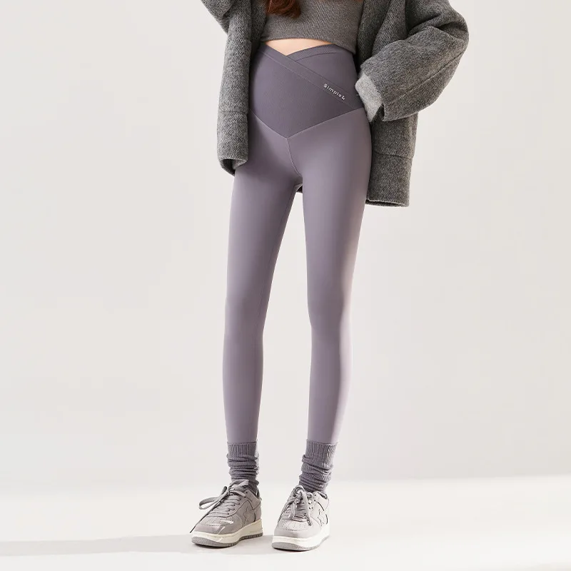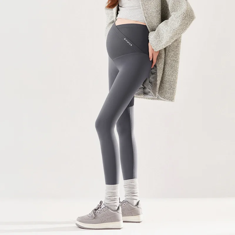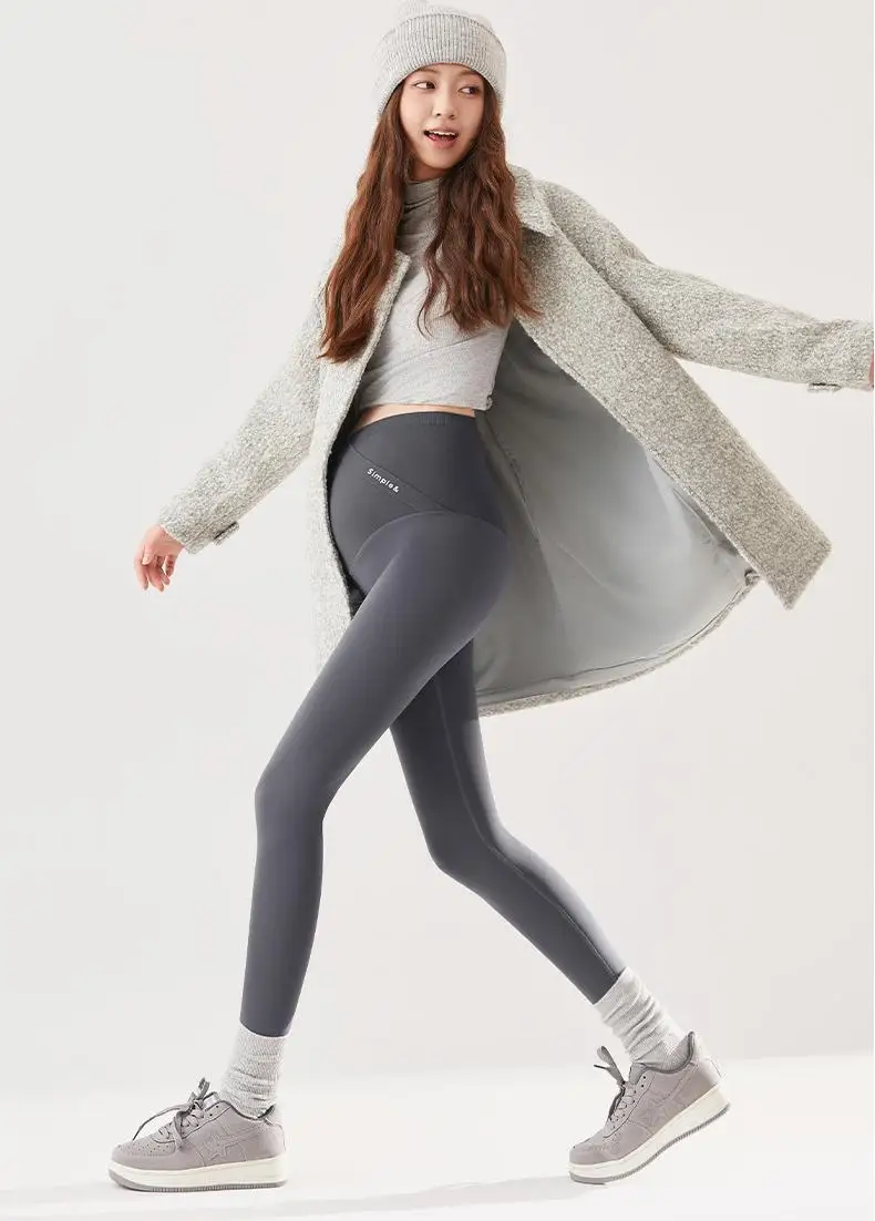 Winter Seamless Shark Pants for Pregnant Women High-Waisted Maternity Yoga Fleece-Lined Belly Support Butt-Lifting External Wear