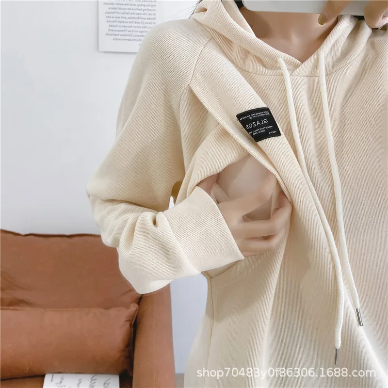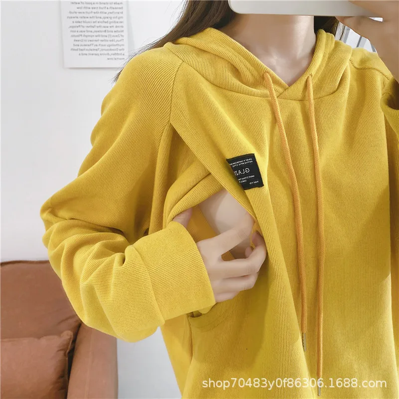 Cotton Nursing Sweatshirt with PULLOVER Closure Hood That Opens on Both Sides for Easy Breastfeeding