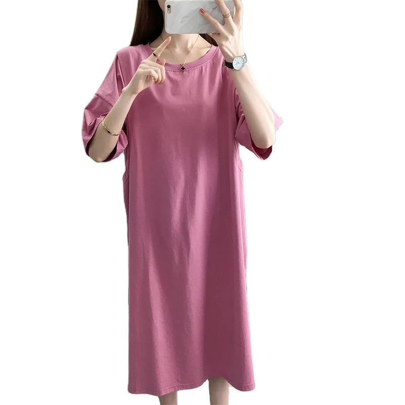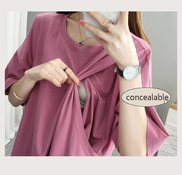 Maternity Nursing Dress with Modal Knitted Fabric Short Sleeve Summer Zipper Closure for Breastfeeding