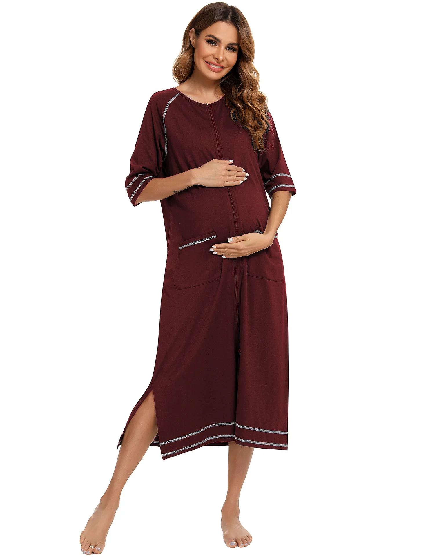 Casual Loose Seven-Point Sleeve Maternity Dress With Lactation Zipper Women's Home Nightgown Sleep & Lounge Product