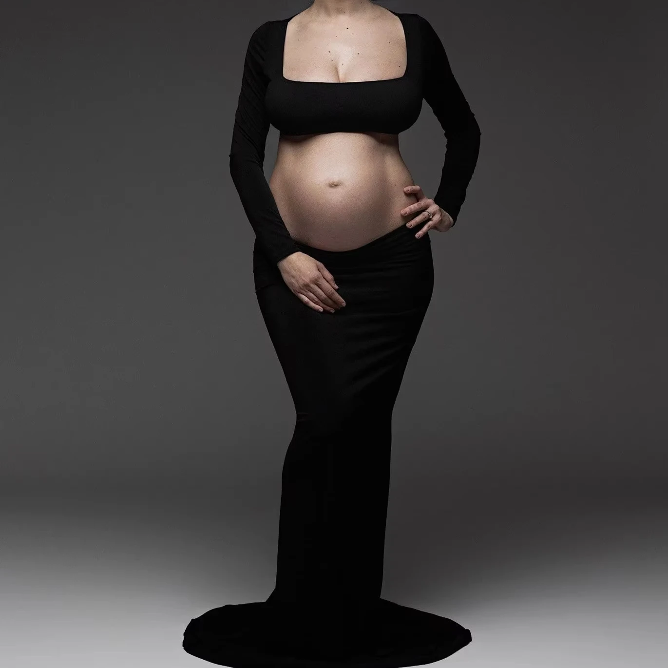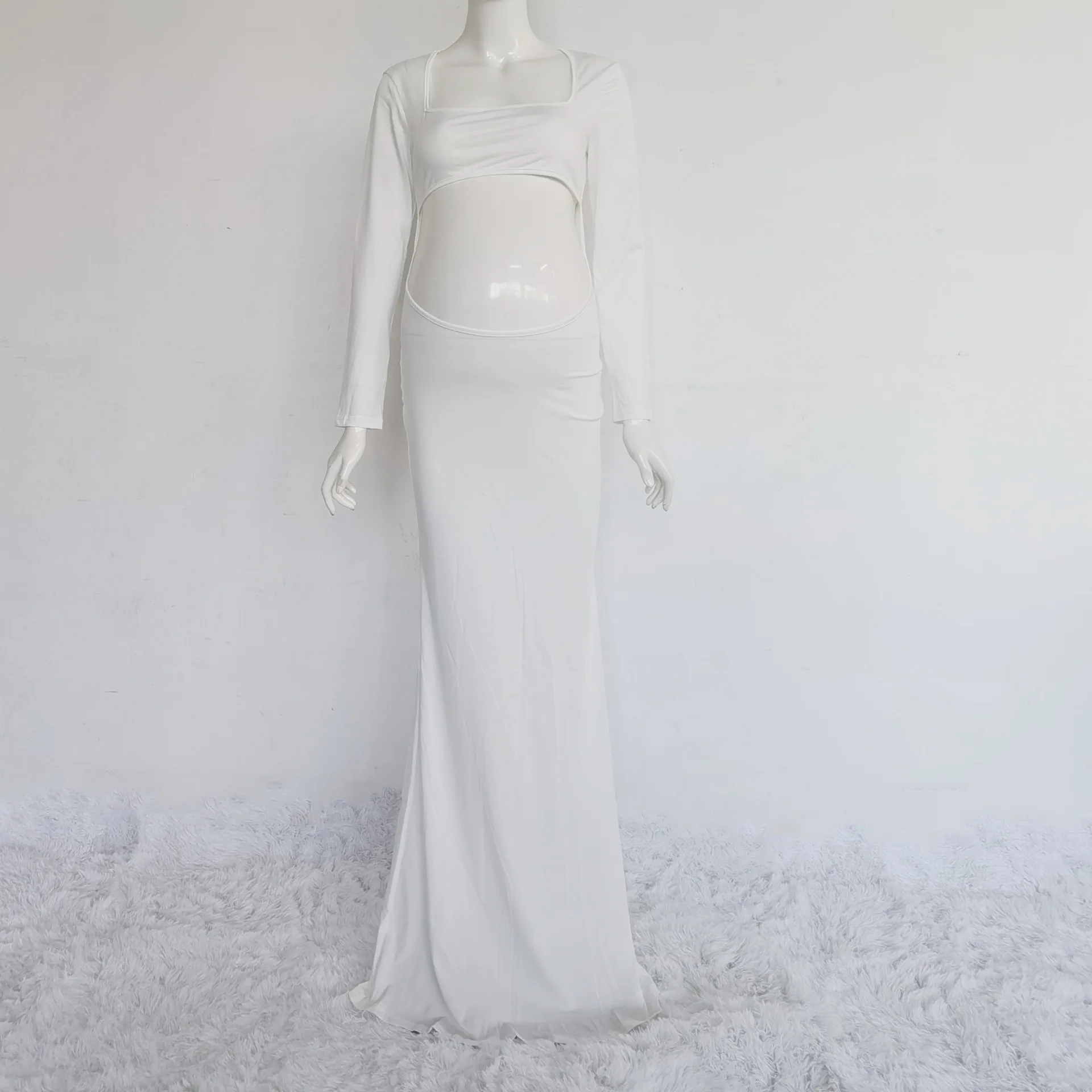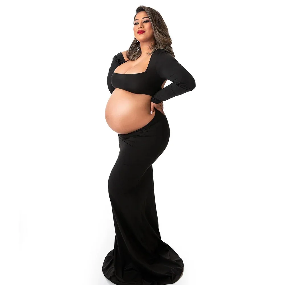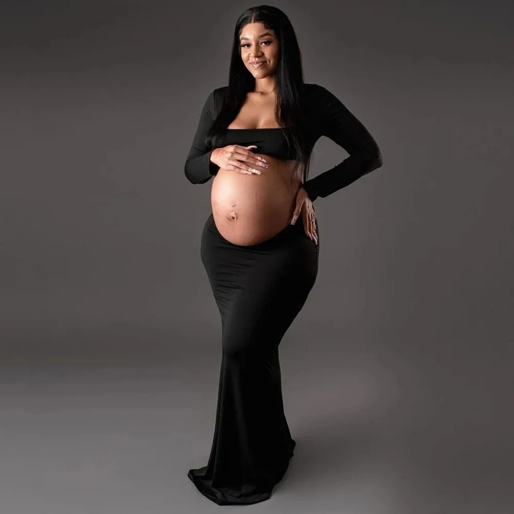 Long Sleeved Stretch Maternity Dress for Photoshoot Rayon Knitted Fabric with Sleeves up to cm Long Back Design