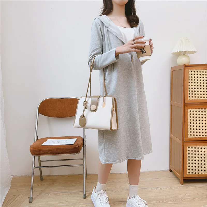 Sustainable Multi-functional Maternity Long Sleeve Breast Milk pink Dress