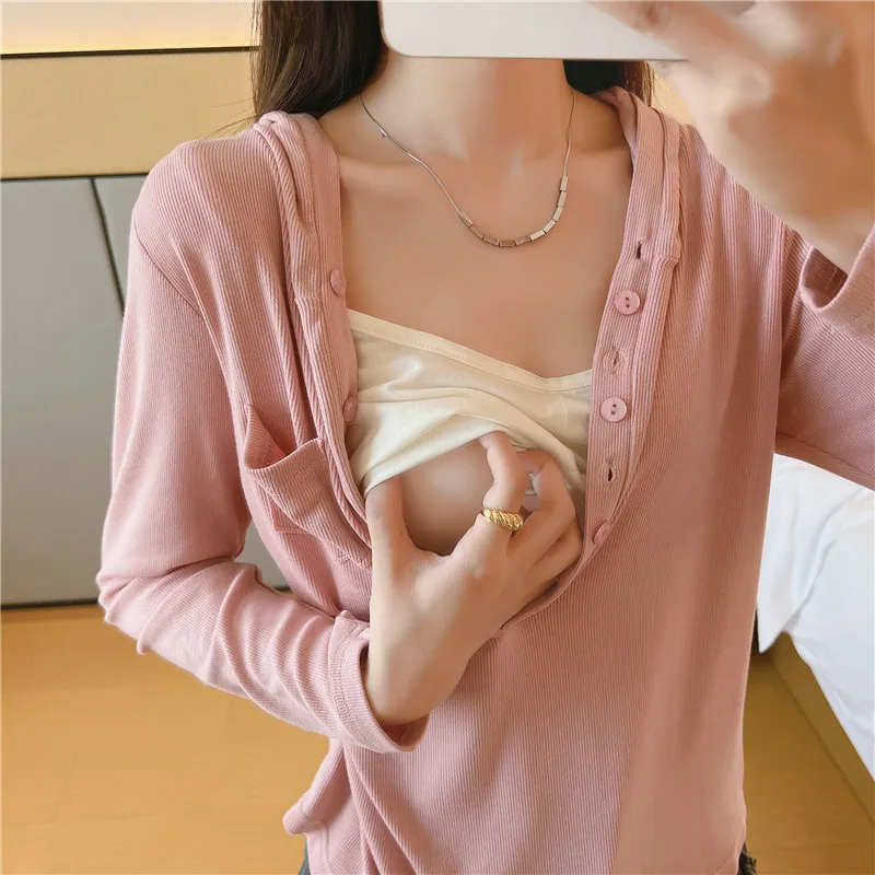 Women's Maternity Cotton Care Top Long Sleeve Breastfeeding T-shirt