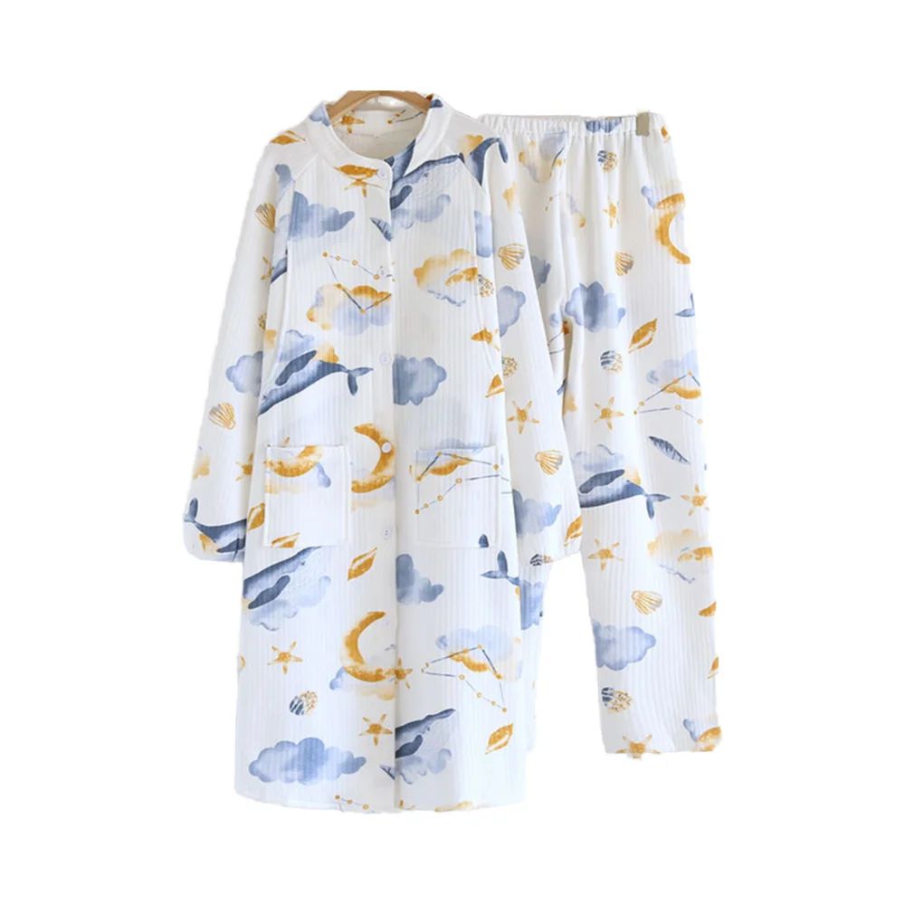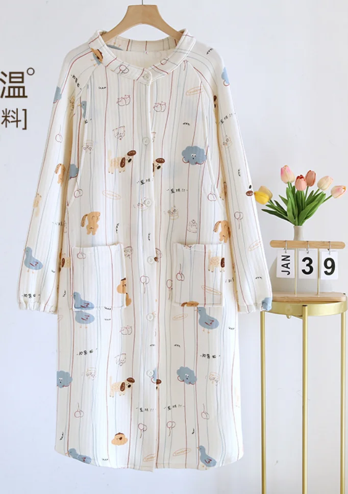 Winter air Cotton Interlayer Maternity Dress During Pregnancy Postpartum Nursing Pregnant Women Pajama Women