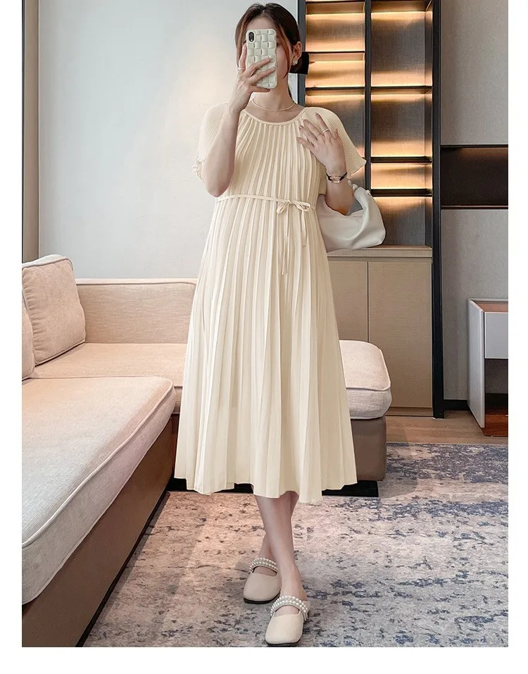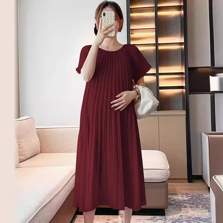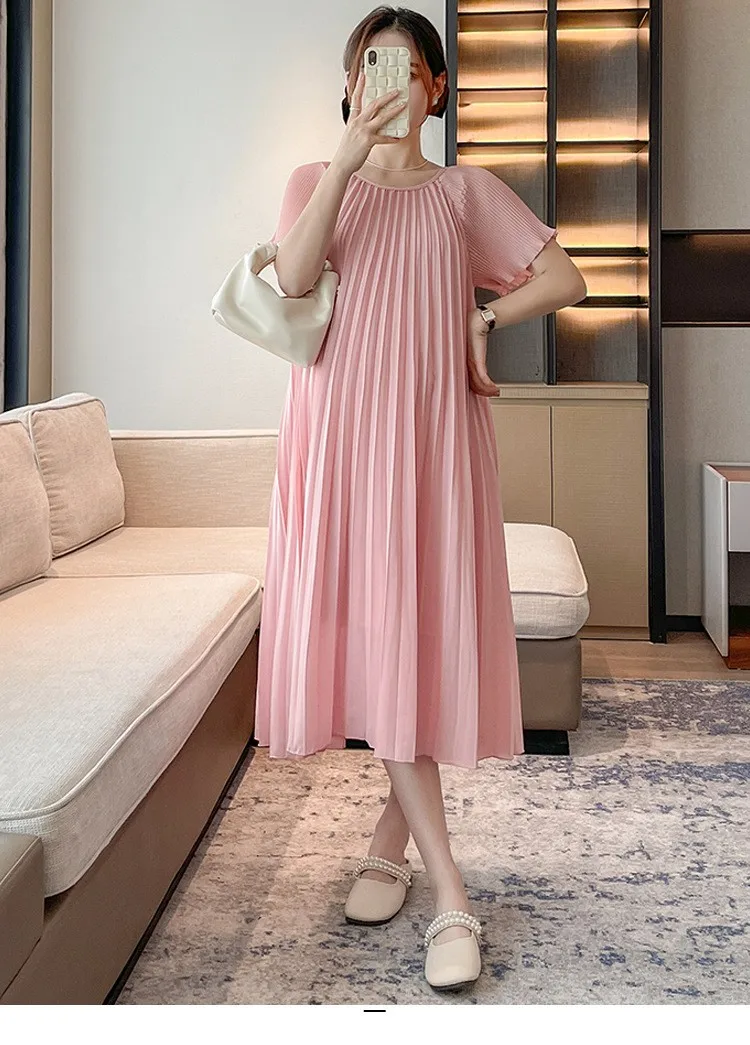 Maternity dress summer dress sweet loose three-dimensional pleats in long short-sleeved maternity dress