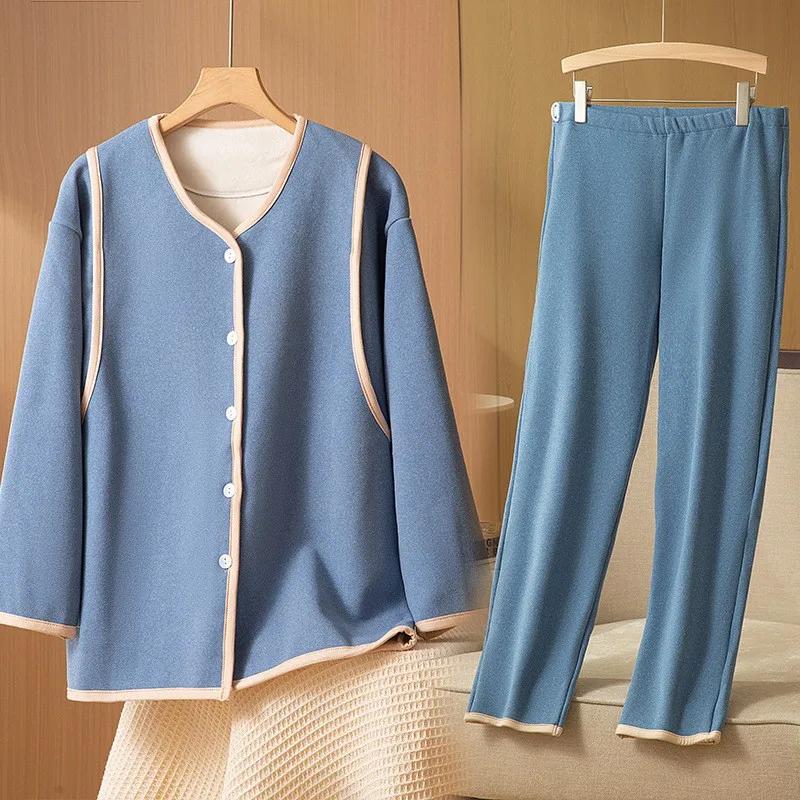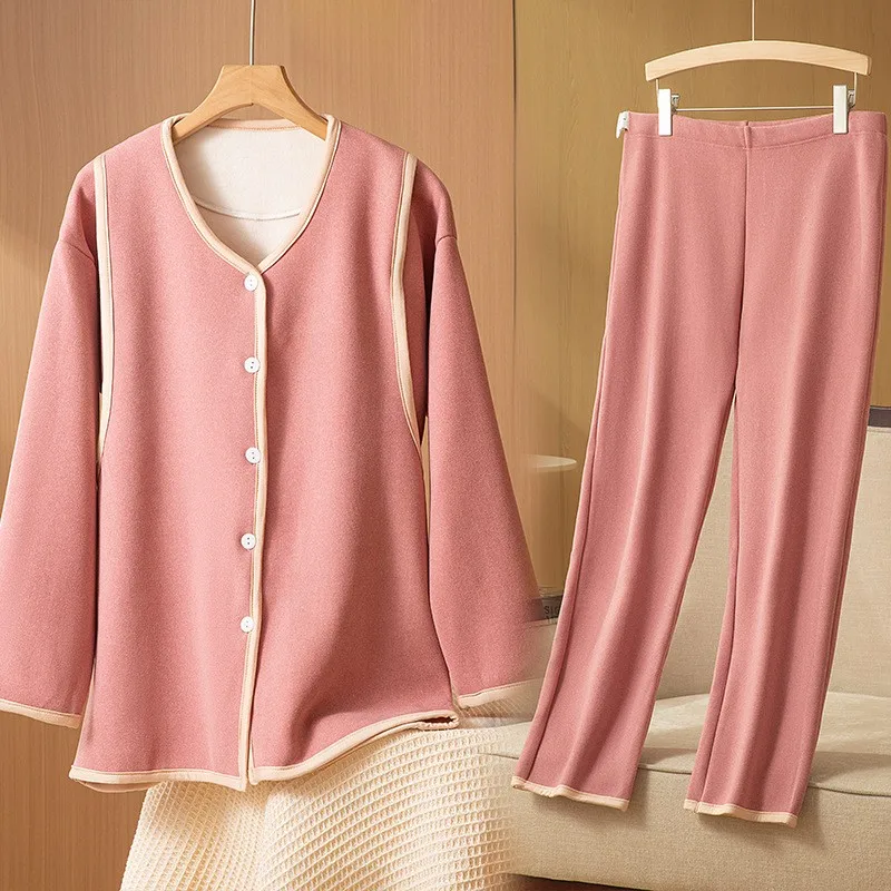Autumn and Winter Maternity Casual Set Thickened Double Fabric Solid Color Cardigan for Breastfeeding Sleep & Lounge