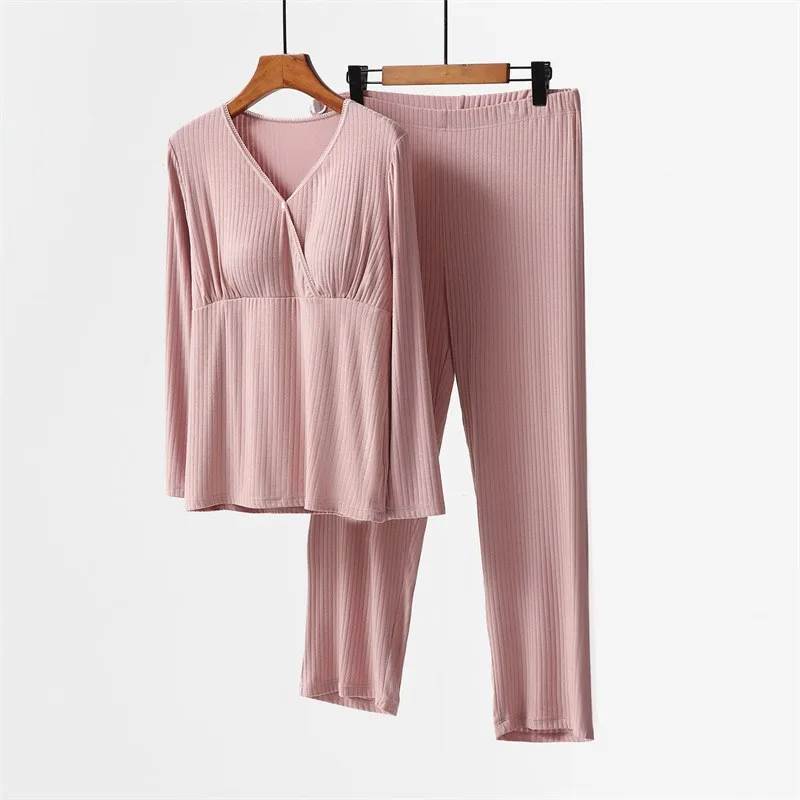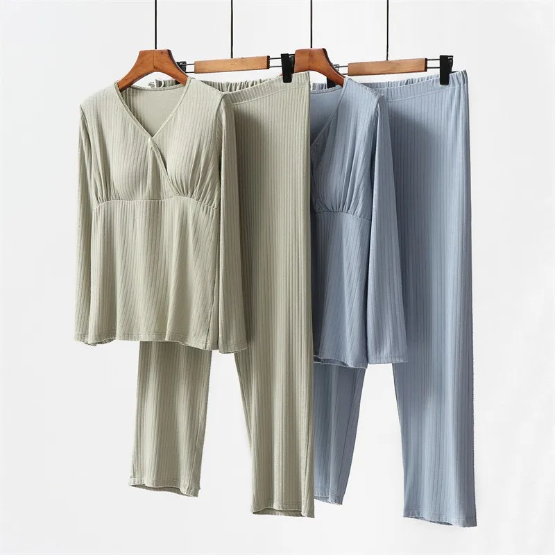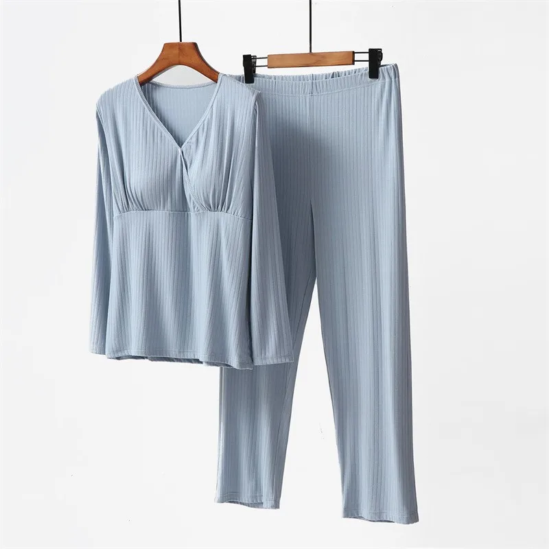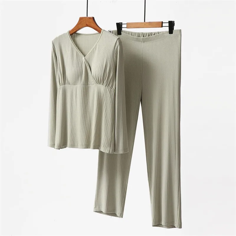 Maternity Set Breastfeeding Maternity Wear with Breast Pad No Underwear Home Wear Thin Breathable