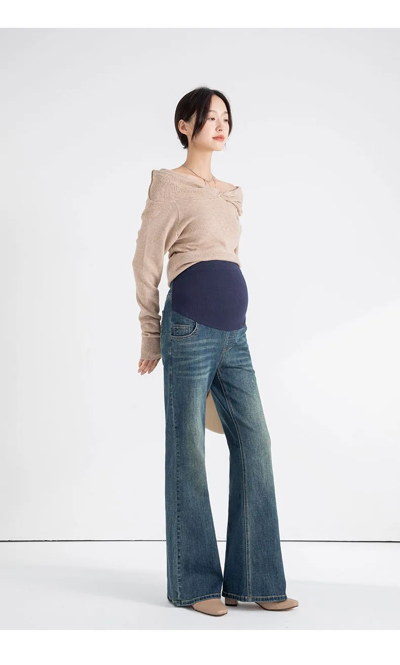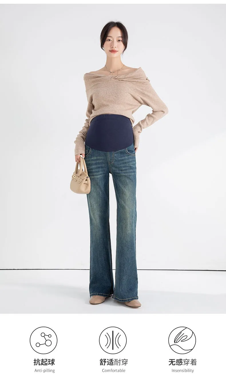 Maternity Denim Pants Pregnancy Pants Adjustable Belly Jeans Pants Spring and Autumn extra Size to 2XL